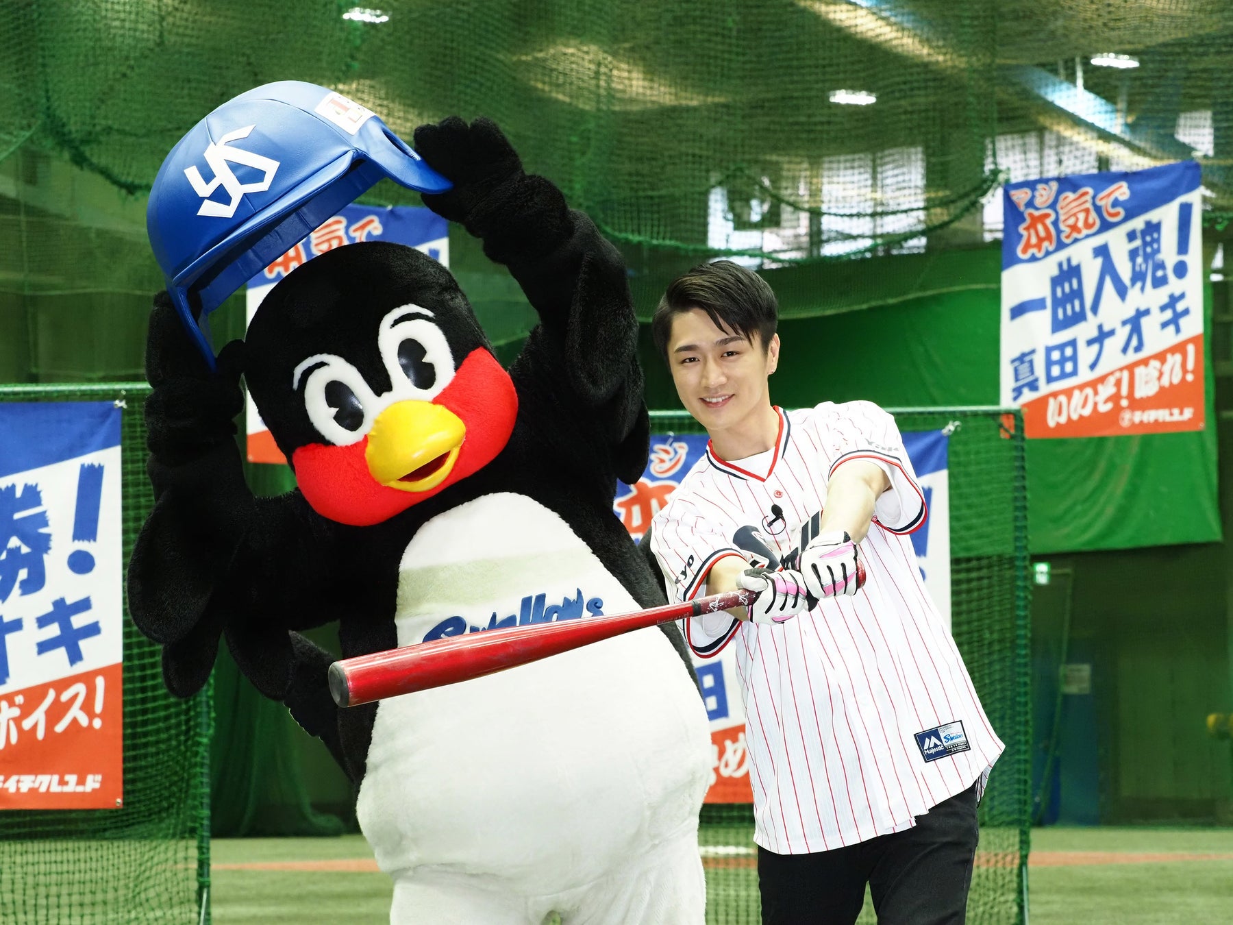 真田ナオキは、第62回日本レコード大賞最優秀新人賞を受賞し、今最も勢いに乗る若手実力派歌手として注目されている。小学校一年生から野球をはじめ日本選抜選出の経験を持つ。昨年、球団マスコットキャラクター「つば九郎」とティーバッティングで的当て対決を行っていたが、始球式を行うのは今回が初となる。8月23日に、所属レコード会社のテイチク公式YouTubeチャンネルで喜びの報告と意気込みを語る生配信が19時から行われる。