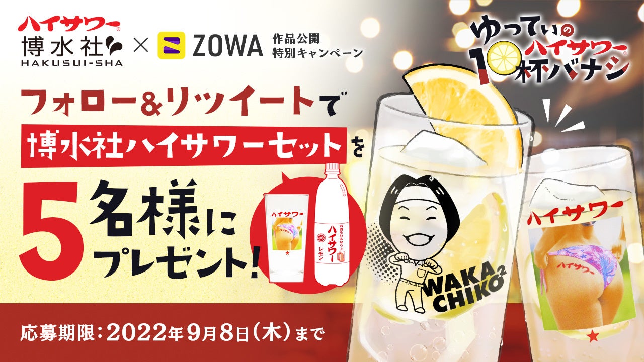 番組の配信開始を記念して、お酒をわるための飲料としてお馴染み「ハイサワー」のセットが5名に当たるTwitterキャンペーンを開催中です。