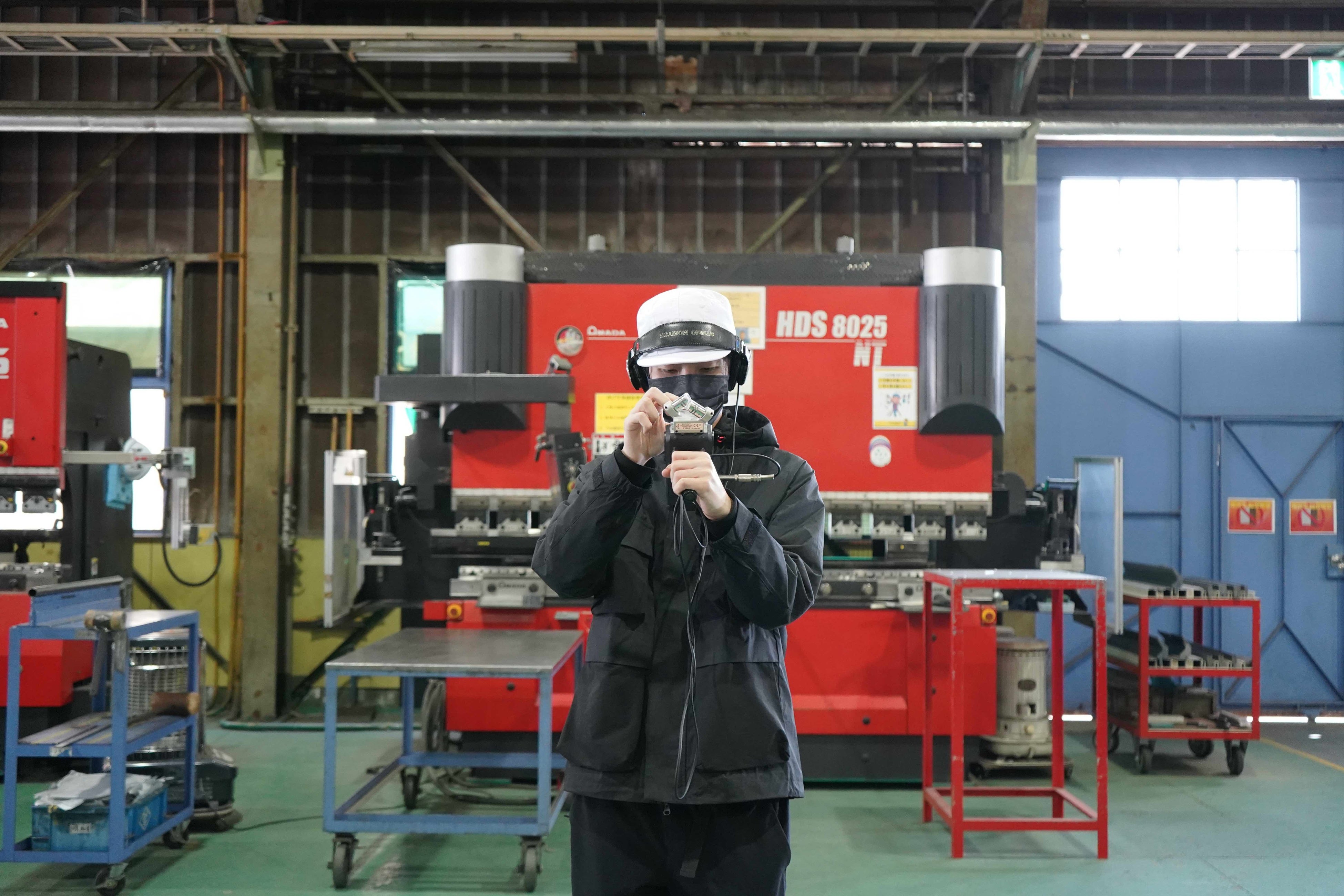 ↑クシダ工業の八幡製作所にて集音するSEKITOVA氏