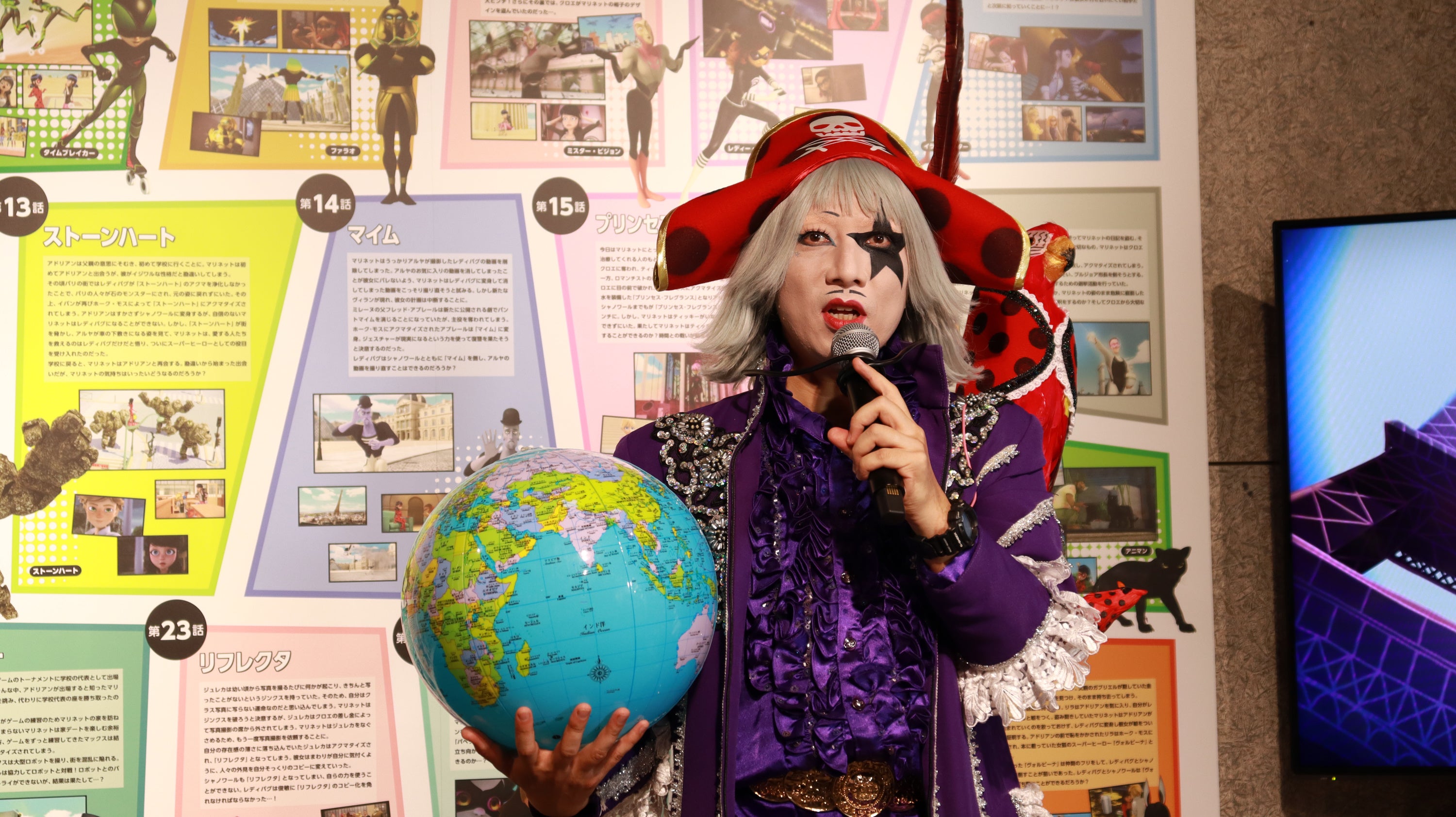 ゴー☆ジャスさんは「レディバグ」、山田ルイ 53 世さんは「シャノワール」をモチーフにしたオリジナル衣装で登場し、ミラキュラスの魅力や親子で楽しんでいるエピソードについて語りました。