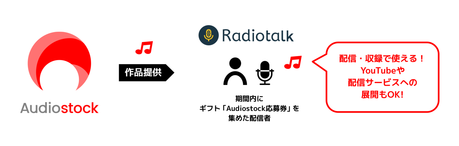この度、80万点以上のBGMや効果音等を販売する世界最大級のストックミュージックサービス「Audiostock」 にて選定された「おすすめ効果音」の中から5点を、期間内に一定の条件を満たしたRadiotalkの配信者へプレゼントする新企画を8月24日より開始いたしました。