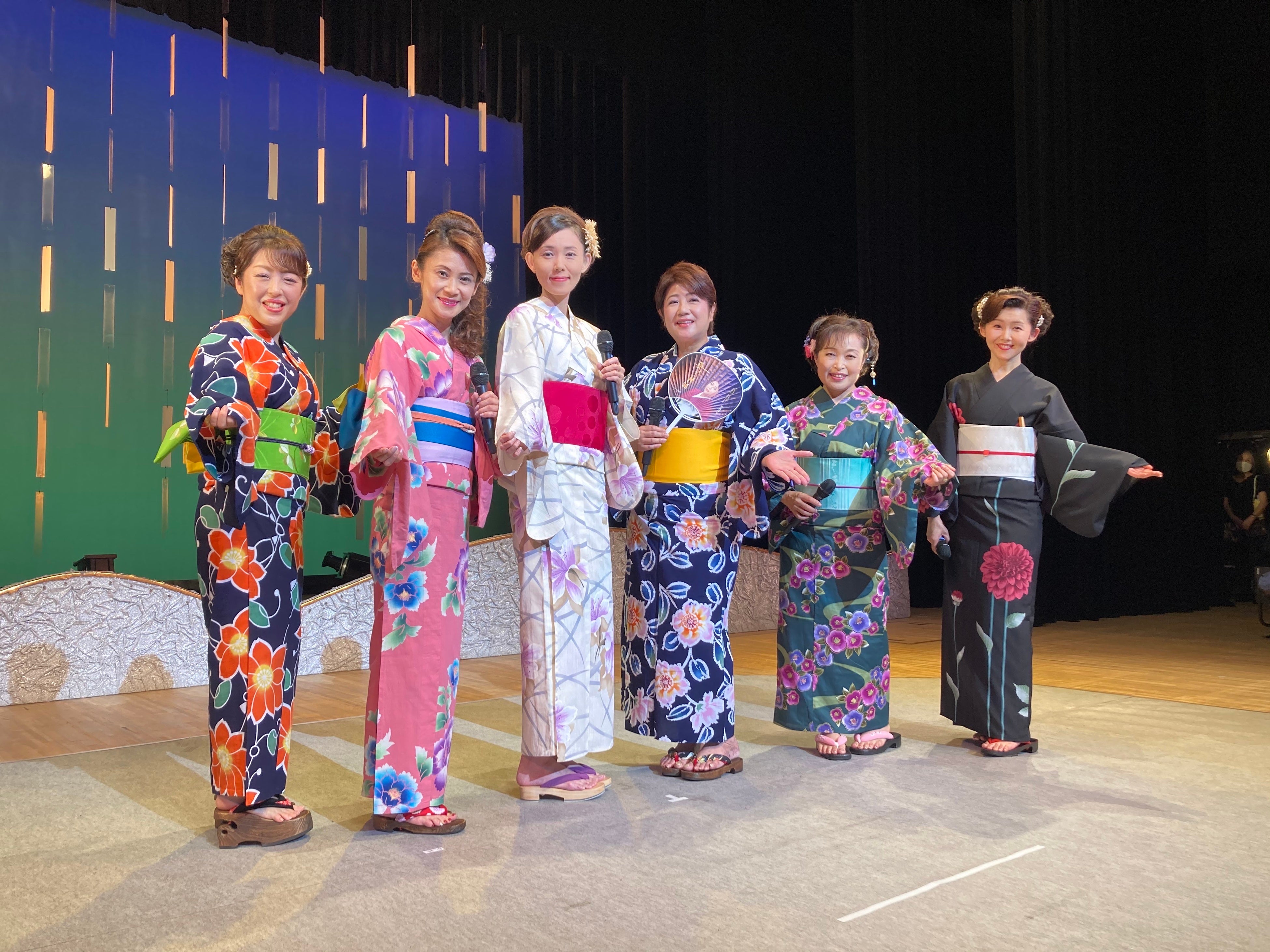 幕が上がると、色鮮やかな浴衣姿の6名が登場。真夏の暑さも吹き飛ばすほどのさわやかな装いに、会場からは大きな拍手が沸き起こった。“夏だ!浴衣だ!テイチク祭り!”というタイトルの通り、夏の名曲カバーコーナーも。永井みゆきが『春夏秋冬屋形船』、秋山涼子が『月がとっても青いから』、山口ひろみが『お祭りマンボ』、美貴じゅん子が『お祭りの夜』、小桜舞子が『京都慕情』、服部浩子が『月夜だね』と、誰もが知っている夏の名曲をカバーし、会場内に心地よい風を吹かせた。