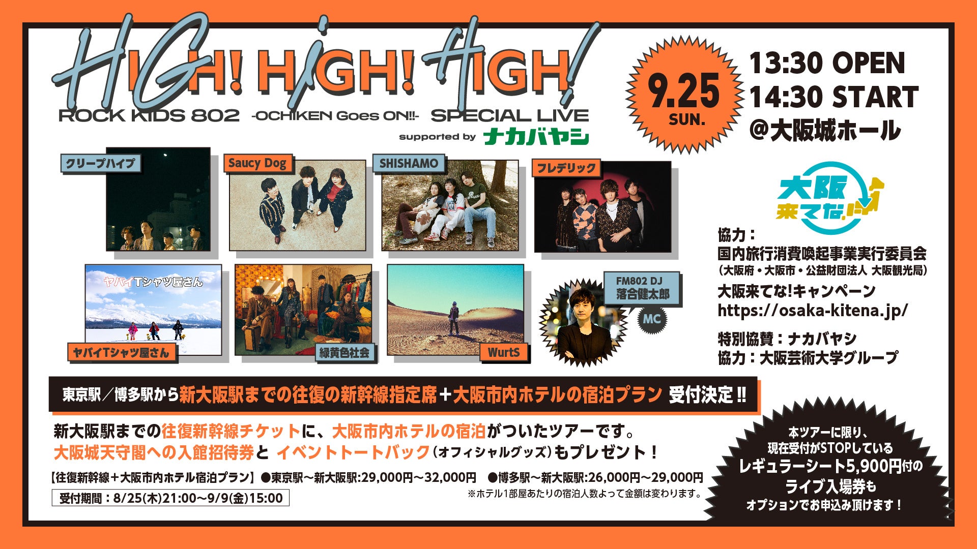 FM802「ROCK KIDS 802」が送る夏の恒例インドアイベント、『HIGH!HIGH!HIGH!』。東京・福岡からのオフィシャルツアー「新幹線+大阪市内ホテル宿泊プラン」が決定!
