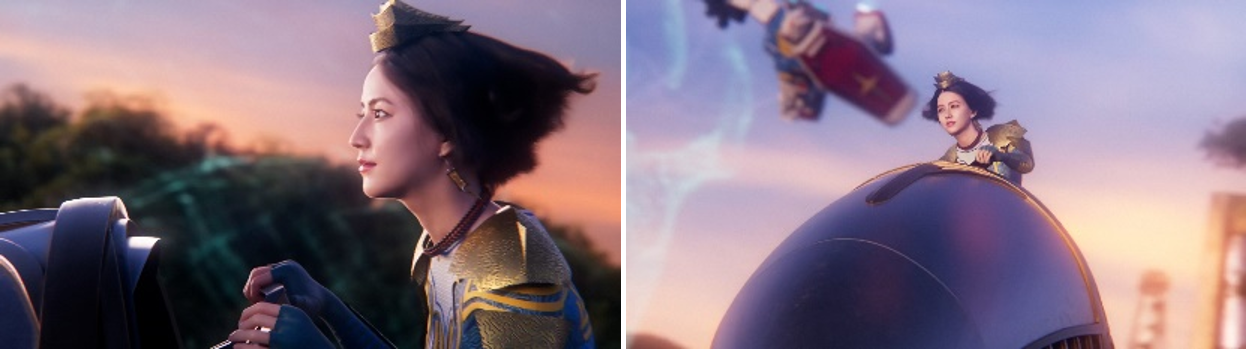 濃密な3DCGで表現された異世界で長澤さんがガンダムと躍動する、