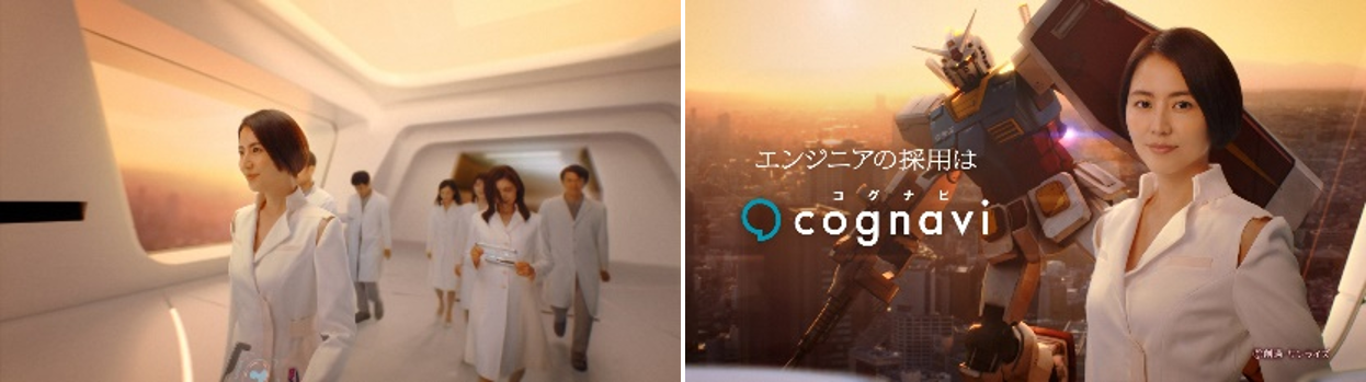 今回のCMキャンペーンでは、新イメージキャラクターとして女優の長澤まさみさんを起用し、2020年春にオンエアされた『コグナビ』CM第一弾に引き続き、「機動戦士ガンダム」の主要キャラクターが登場します。エンジニア採用を担当している長澤さんが、濃密な3DCGで表現された異世界で「機動戦士ガンダム」の人気アニメキャラクターと共に『コグナビ』の世界を体験するストーリーです。