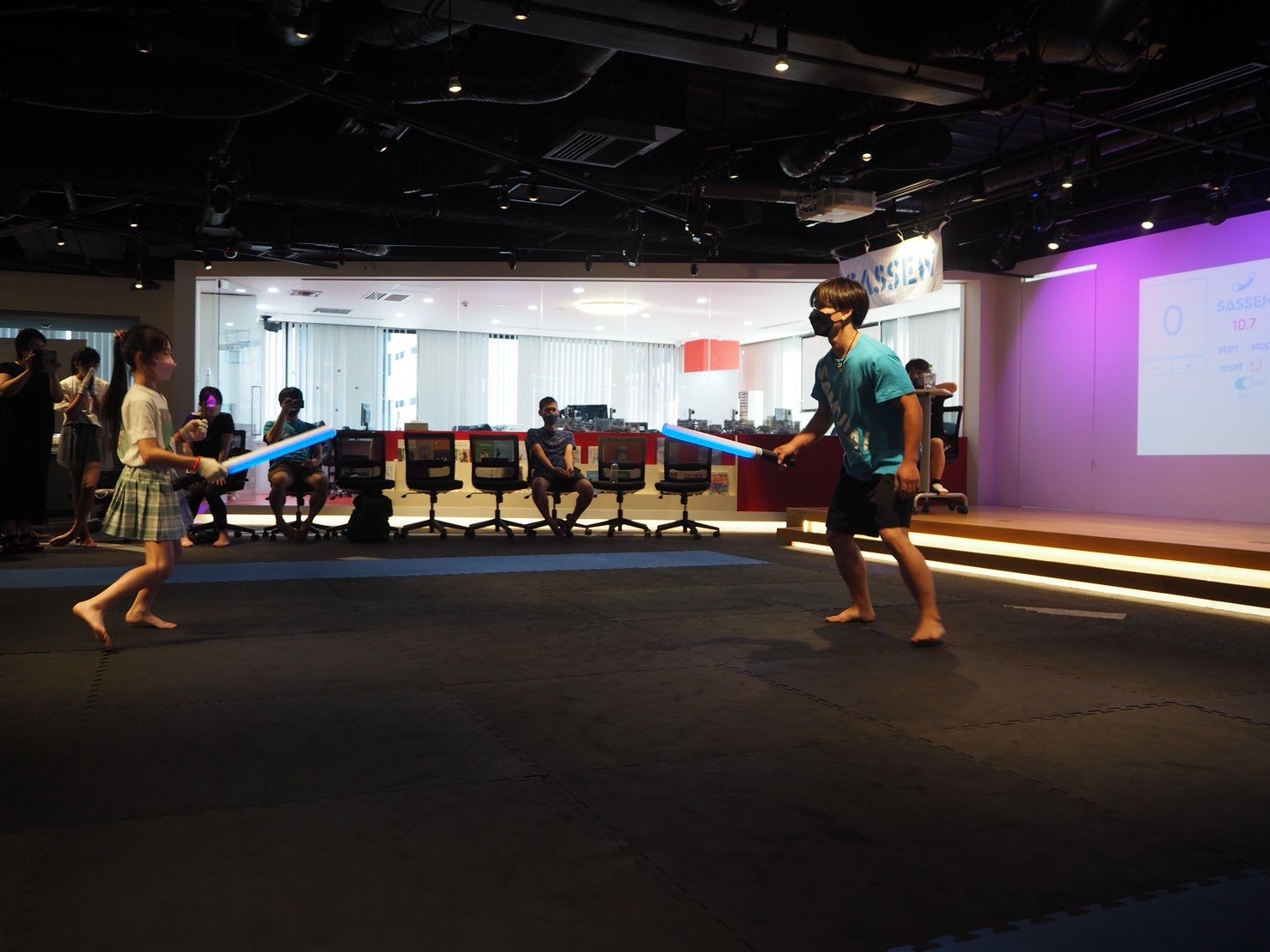 SASSEN(サッセン)とは、センサー内蔵の光る刀で戦う次世代のデジタルチャンバラ。刀はBluetoothでアプリと連動しており、スマホ一台と刀2本があれば場所を問わず開催できるのが魅力。もともとは福岡県北九州市の武術道場で発祥し、安全で手軽にどんな年齢でも楽しめる生涯スポーツとして活動している。