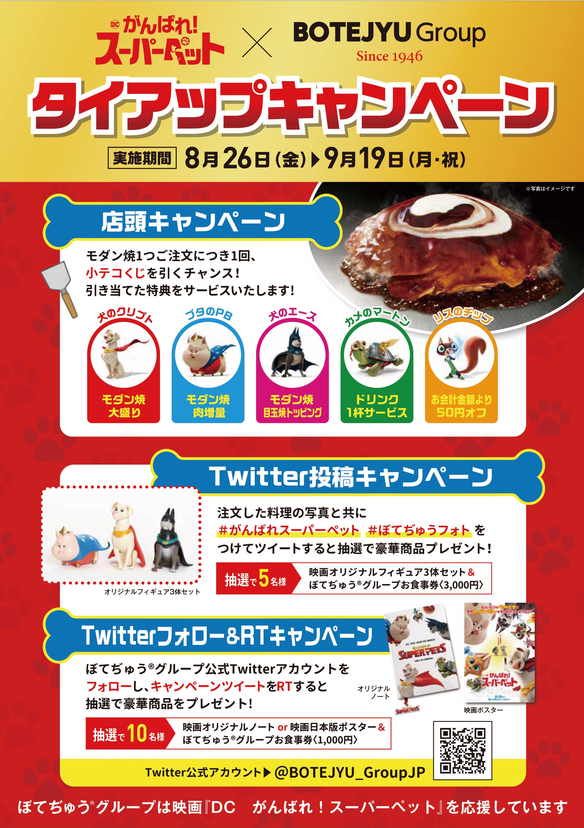 「ぼてぢゅう®」を運営する「BOTEJYU®︎ Group」(大阪府大阪市、代表取締役社長:栗田英人、以下「当社」)が、映画「DC がんばれ!スーパーペット」とタイアップ。2022年8月26日(金)から2022年9月19日(月・祝)にかけて、キャンペーンを開催いたします。