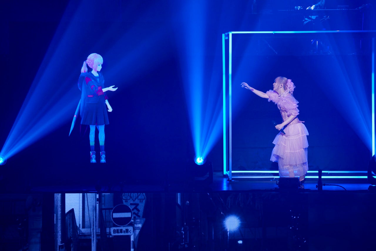 KAMITSUBAKI STUDIOが数多くのバーチャルライブを実施して培った経験を総動員し、最先端のXR演出(クロスリアリティ=VRやARなどの様々な仮想空間技術の総称) と未だかつてない斬新なステージによって、バーチャルシンガーならではの世界観を約3時間にわたって披露。