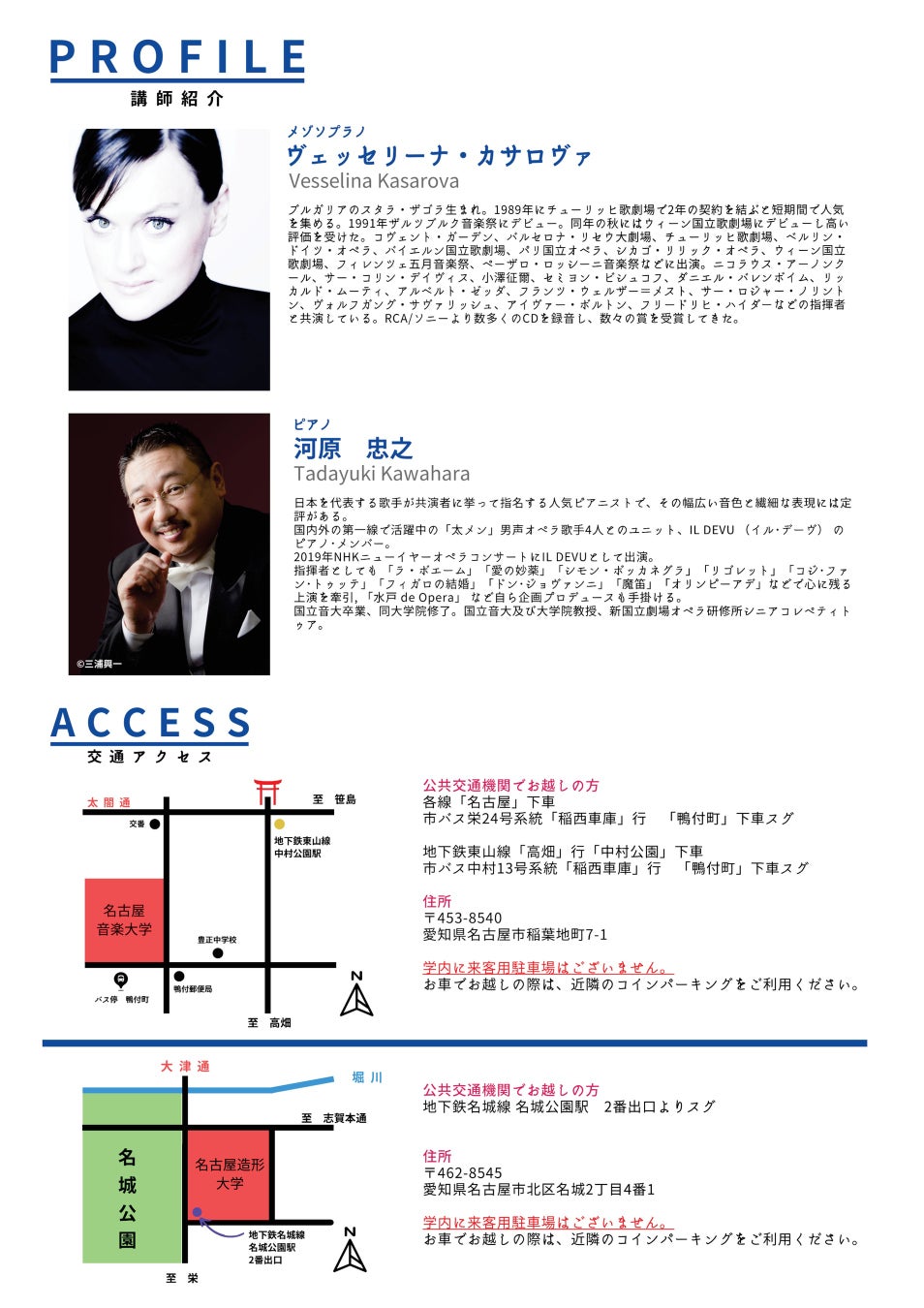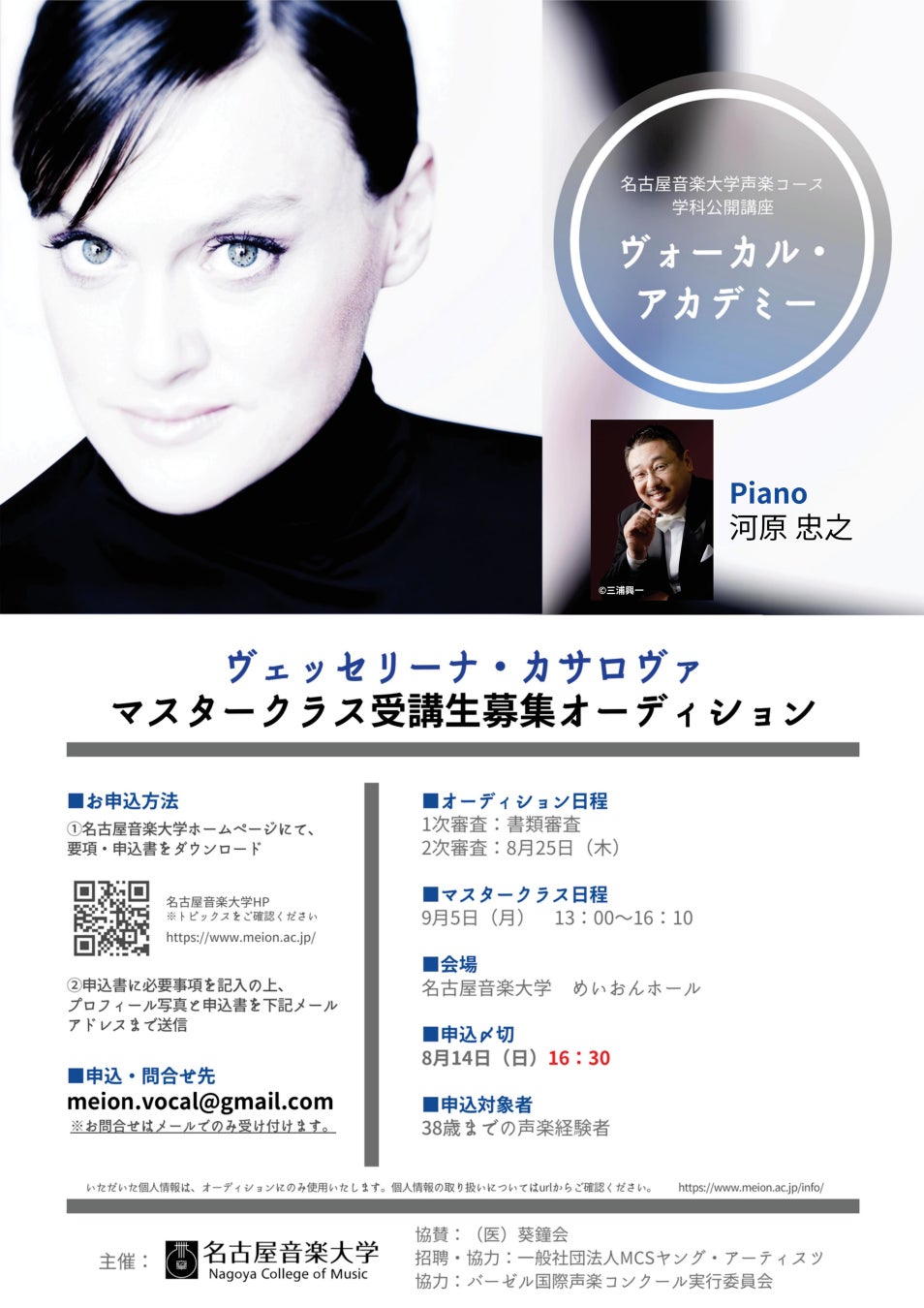 特に、世界屈指のメゾ・ソプラノ歌手 ヴェッセリーナ・カサロヴァ女史が日本国内でマスタークラスを実施することは今回の来日で唯一の機会です。