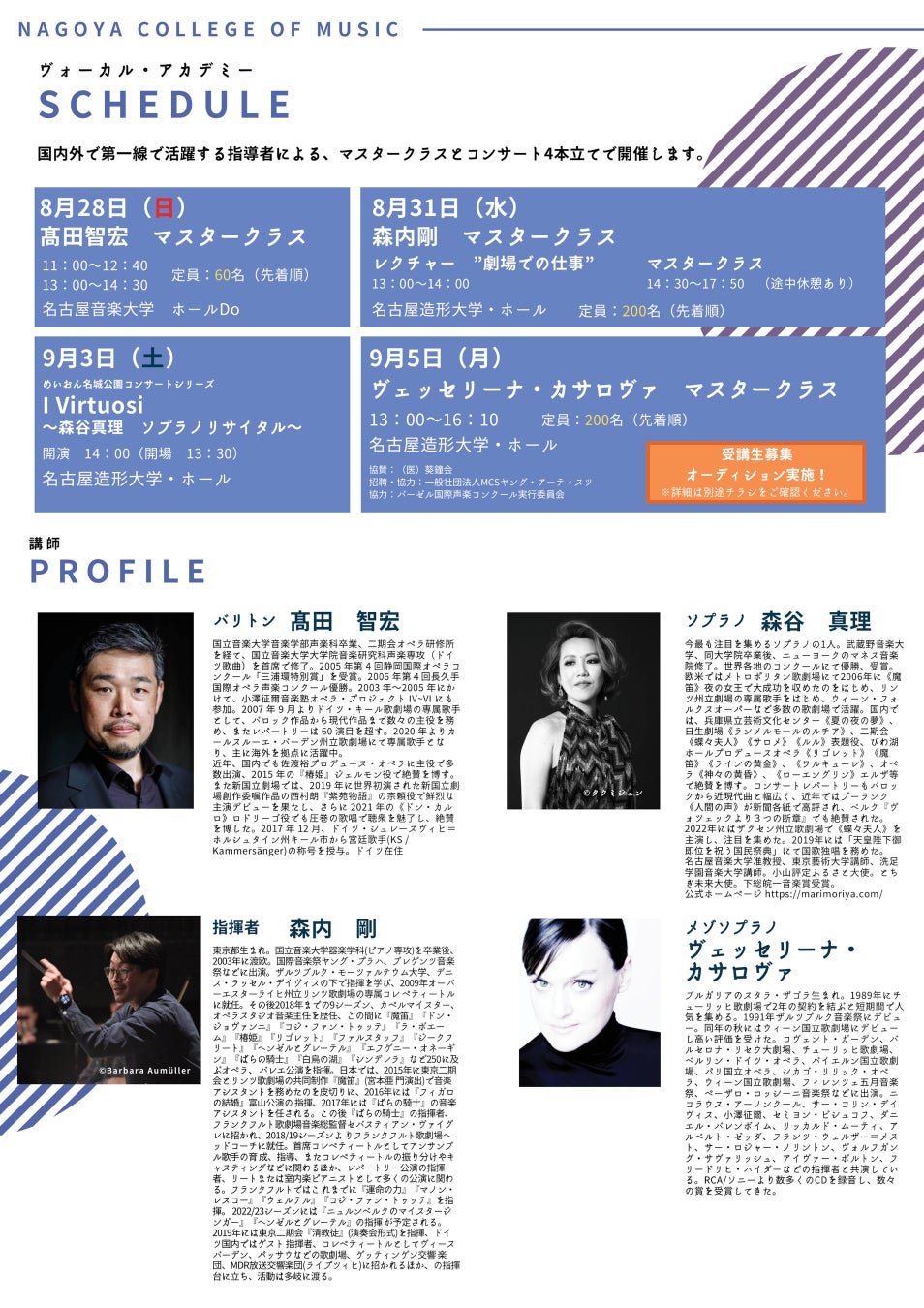 聴講は一般公募とし、受講対象を本学学生に限らず全国から応募を経てオーディションで選出する等、全国的に見ても画期的で独創的な、名古屋を中心とした、声楽芸術振興の活動です。