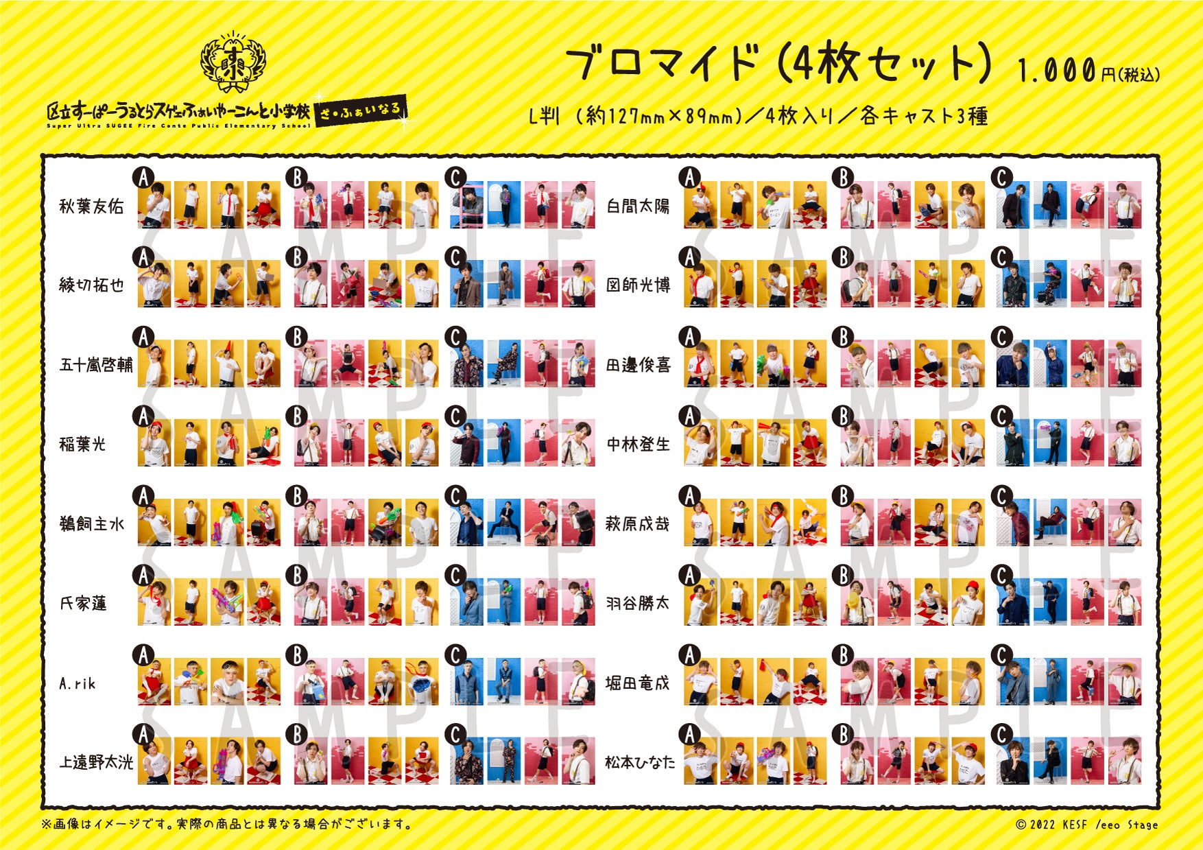 ブロマイド4枚セットはすべてL判サイズ。キャスト一人につき3種類、全部で12枚用意しています。