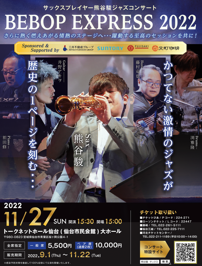 熊谷駿ジャズコンサートが、11月27日(日)にトークネットホール仙台(市民会館)大ホールにて1,000人クラスの国内最大クラスのジャズコンサートにて再び開催決定!