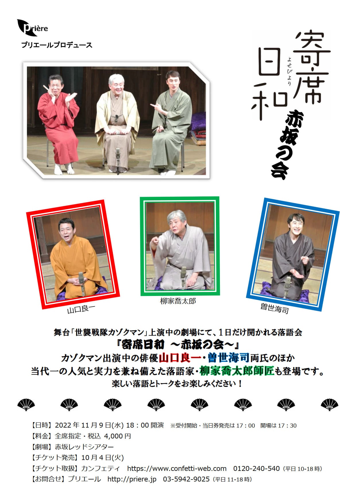 また、「カゾクマン」恒例特別企画『寄席日和 ~赤坂の会~』の開催も決定いたしました。