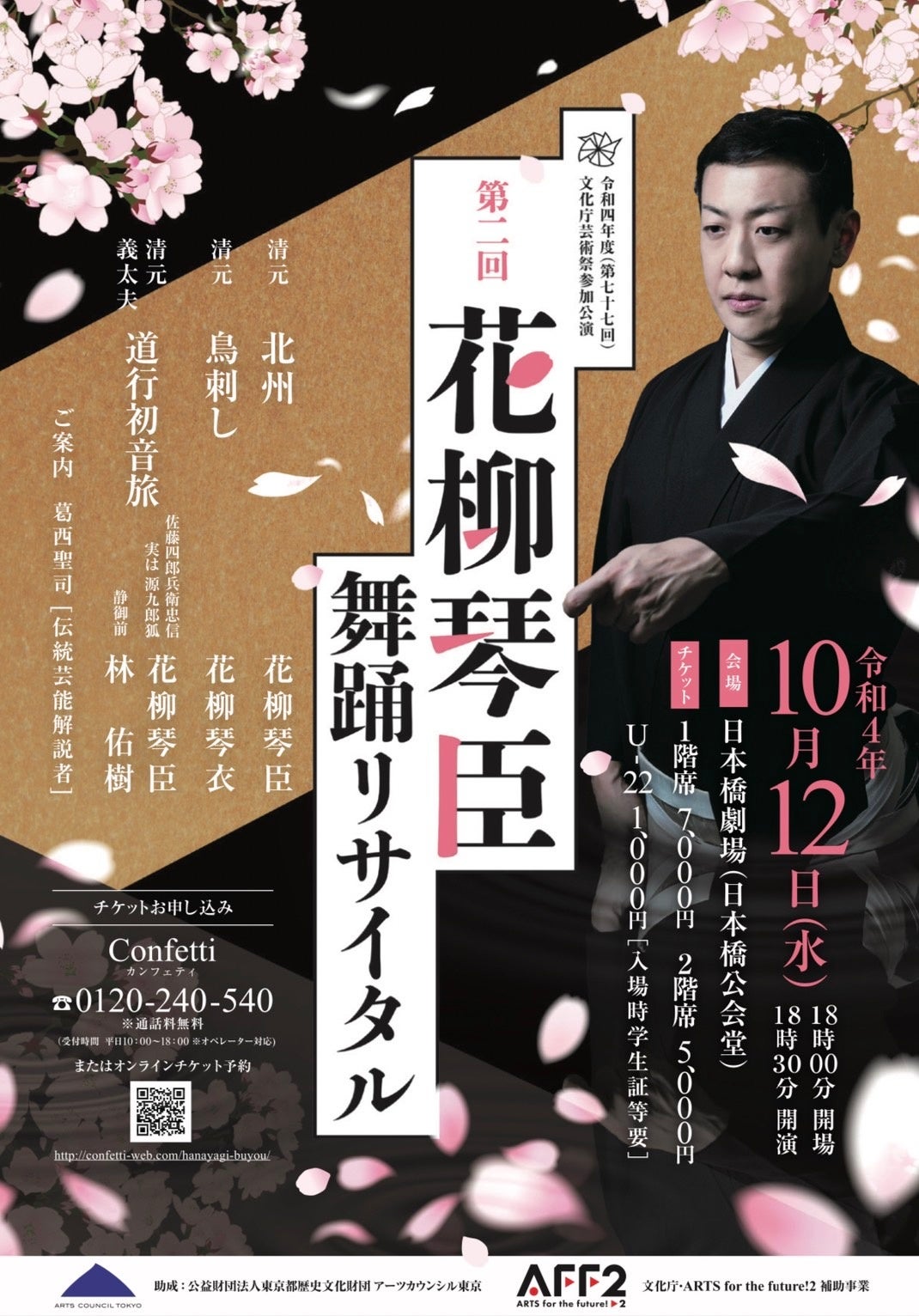 株式会社オフィス・ダンサブル『第二回 花柳琴臣舞踊リサイタル』が2022年10月12日(水)に日本橋劇場(東京都中央区)にて上演されます。チケットはカンフェティ(運営:ロングランプランニング株式会社、東京都新宿区、代表取締役:榑松 ⼤剛)にて9月1日(木)より発売開始です。