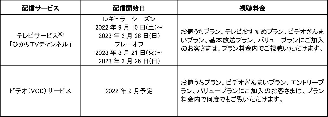 ※1 ひかりTVでは試合翌日以降にビデオサービス(VOD)見放題対象作品としても提供します