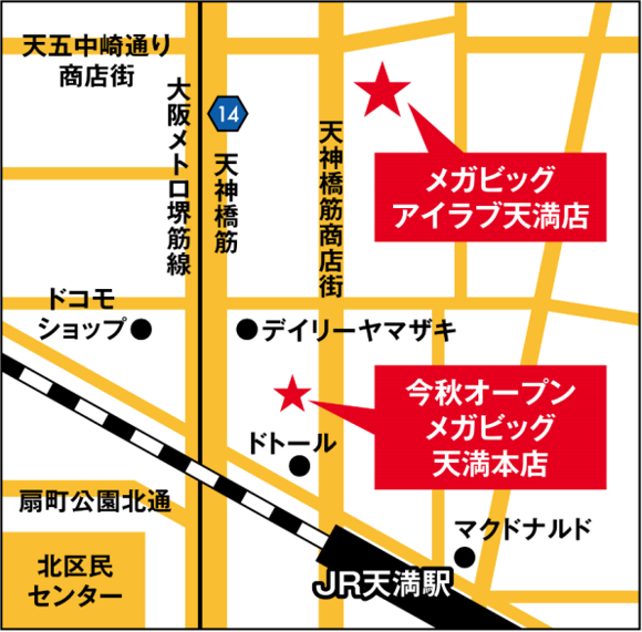 株式会社第一興商は、大阪市内初出店となるメガビッグ「メガビッグアイラブ天満店」と「メガビッグ今福鶴見駅前店」を本日9月1日に同時オープンします。