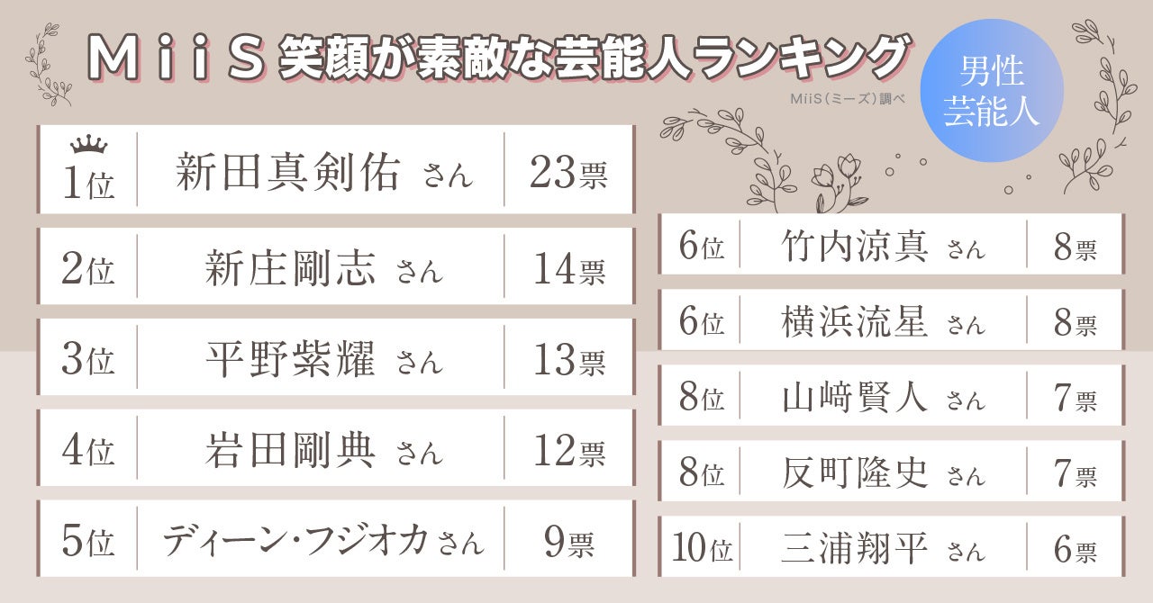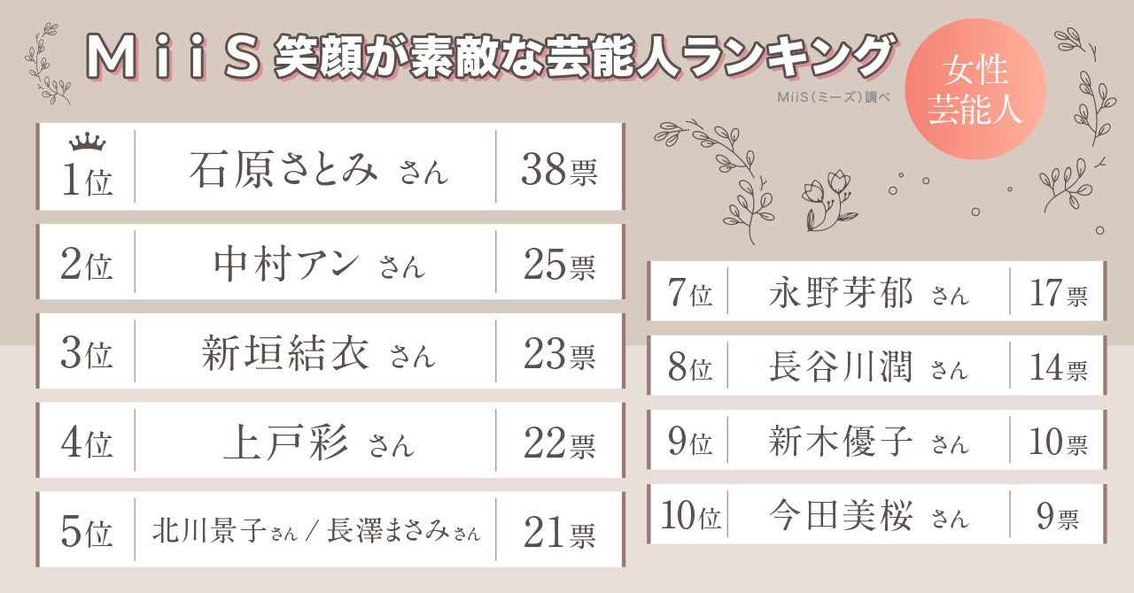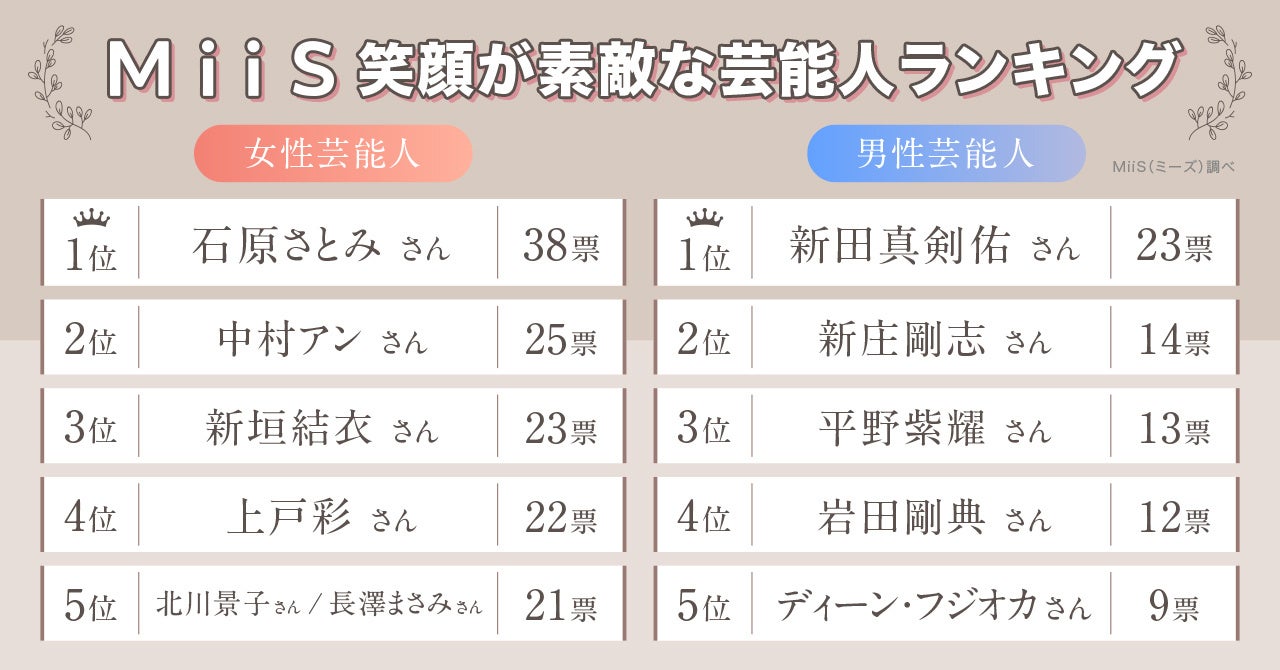 オーラル美容ブランド「MiiS」は8月8日の「歯並びの日」に合わせて、オーラル美容への意識が高いMiiS会員・公式SNSフォロワーに向け、「笑顔が素敵な芸能人」についてのアンケート調査を実施いたしました。