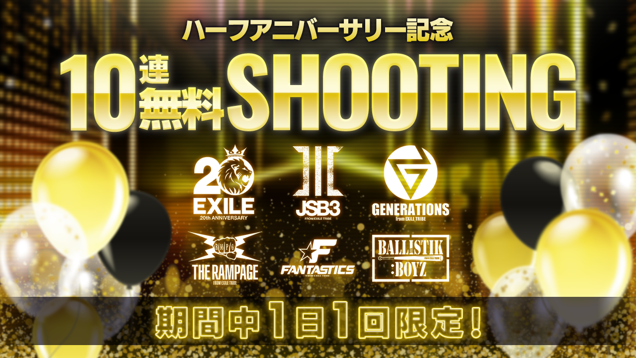 ■ハーフアニバーサリーを記念した1日1回10連無料シューティング開催