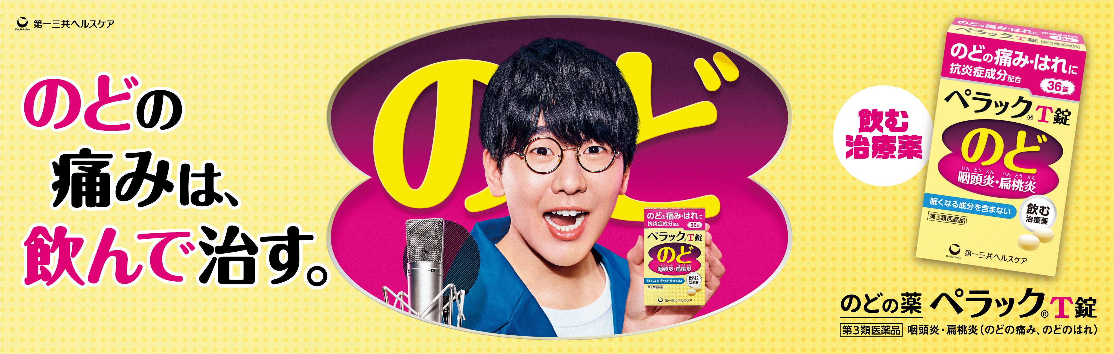 第一三共ヘルスケア株式会社(本社:東京都中央区)は、のどの痛みの治療薬「ペラックTシリーズ」のブランドキャラクターに声優・花江夏樹さんを起用し、スペシャル動画 ペラックT錠「黄色いのどブース」篇を、2022年9月2日(金)に公開いたします。