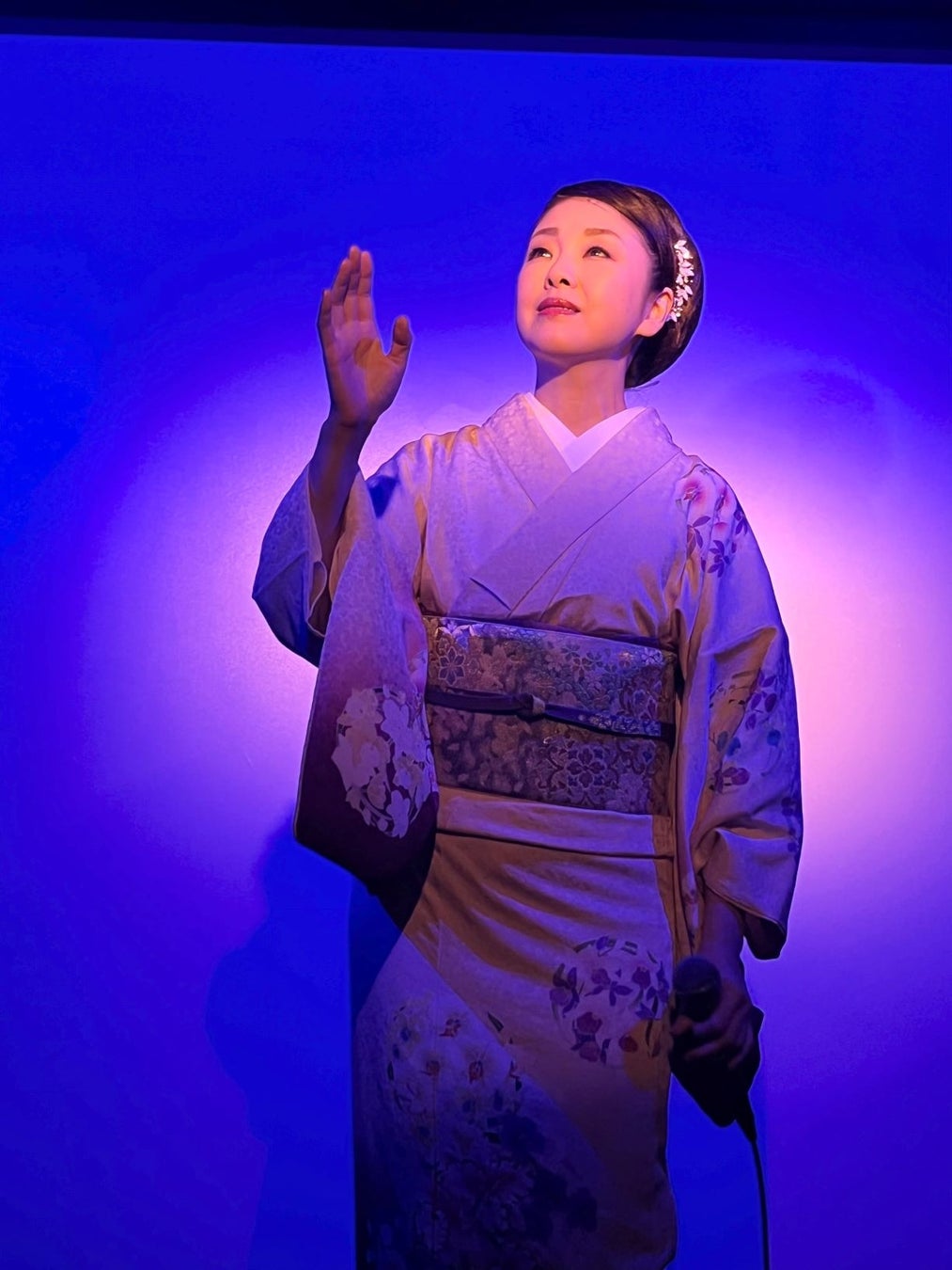 後半では着物に衣装チェンジし「晩夏の岬」や「京都ふたたび」などオリジナル演歌をしっとりと歌い上げてファンを魅了すると、サプライズ報告として、11月23日に新曲「凍る月」が発売されることを発表。