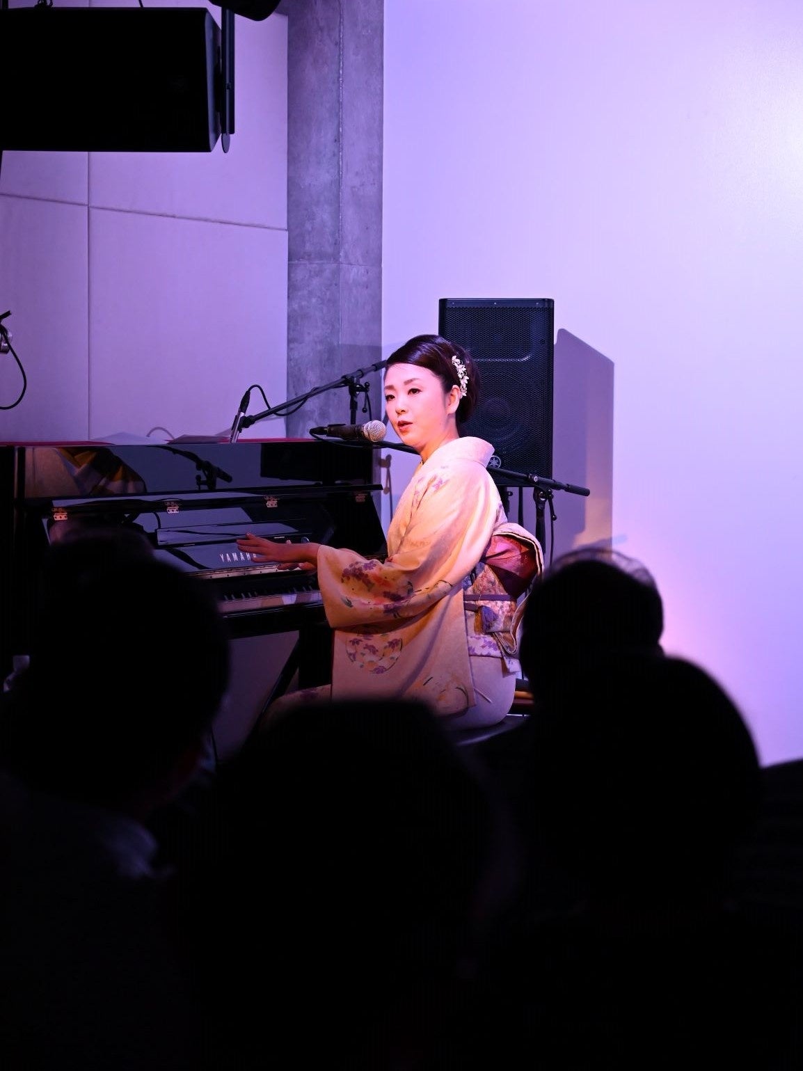 「凍る月」は多岐川舞子のデビュー34周年を締めくくる作品で、作曲家 弦哲也氏が作曲に加えて作詞まで手掛けた注目曲。まだレコーディング前ではあるが、ピアノの弾き語りでいち早くファンへ新曲を届けた。