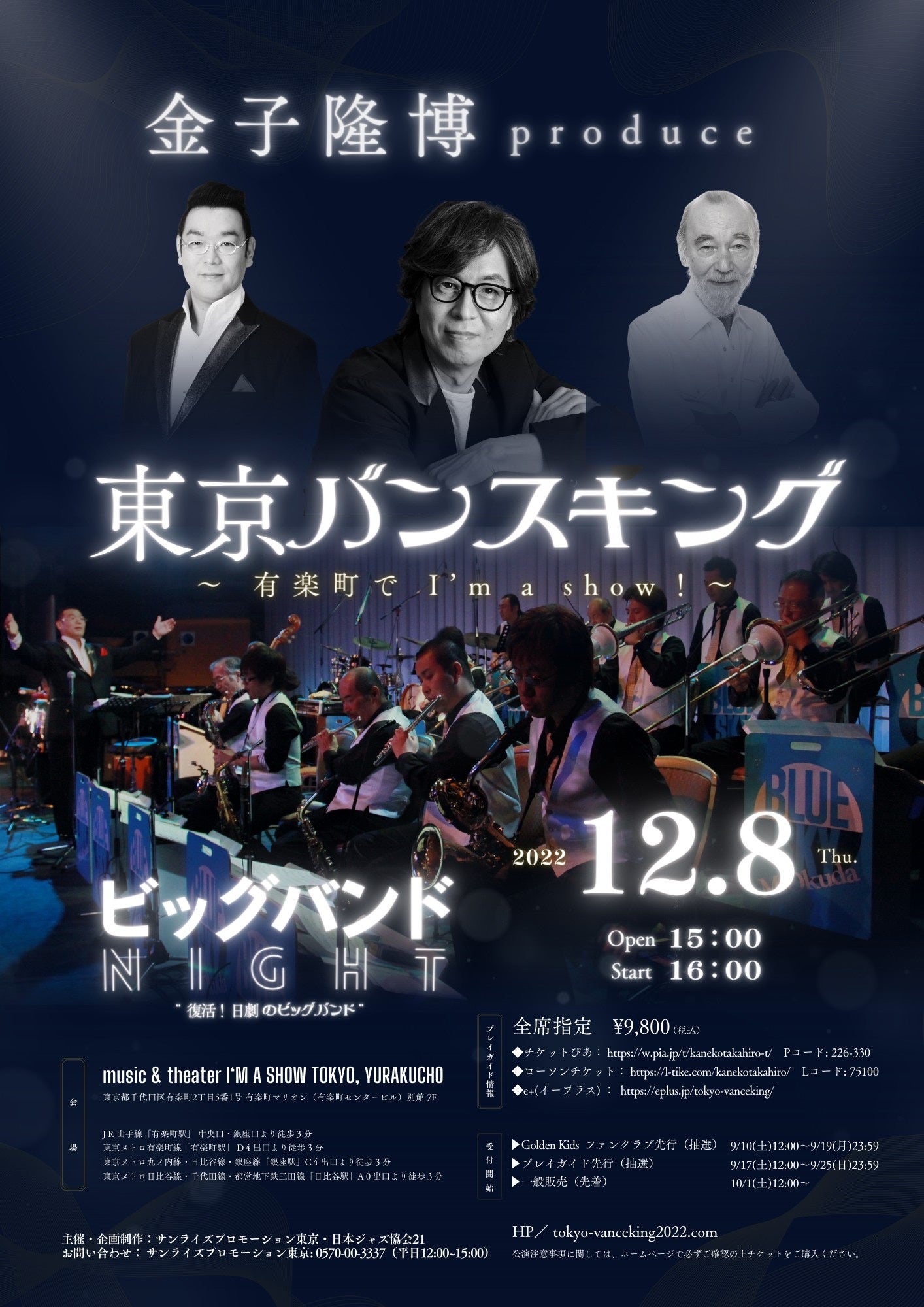 12月1日(木)に、東京・有楽町マリオン別館7Fにオープンする新劇場「I‘M A SHOW」(現・オルタナティブシアター)の記念すべき柿落としシリーズとして、12月8日(木)~11日(日)に『金子隆博produce東京バンスキング 〜有楽町でI’m a show!〜』の開催が決定致しました。