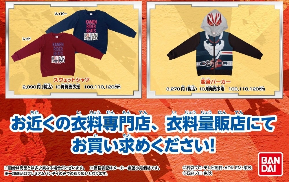 株式会社バンダイ ファッションブランド事業部より、テレビ番組「仮面ライダーギーツ」のキッズ向けアパレル商品が、全国量販店およびバンダイナムコグループ公式通販サイト「プレミアムバンダイ」内「バンダイアパレルストア」( https://p-bandai.jp/apparel/ )にて2022年9月8日(木)より順次発売いたします。