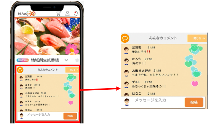 番組に対する評価や各番組のテーマに対する投稿を募集したり、放送中にリアルタイムでほかの視聴者の方とコメント投稿を楽しむことができます。詳細はアプリをご覧ください。
