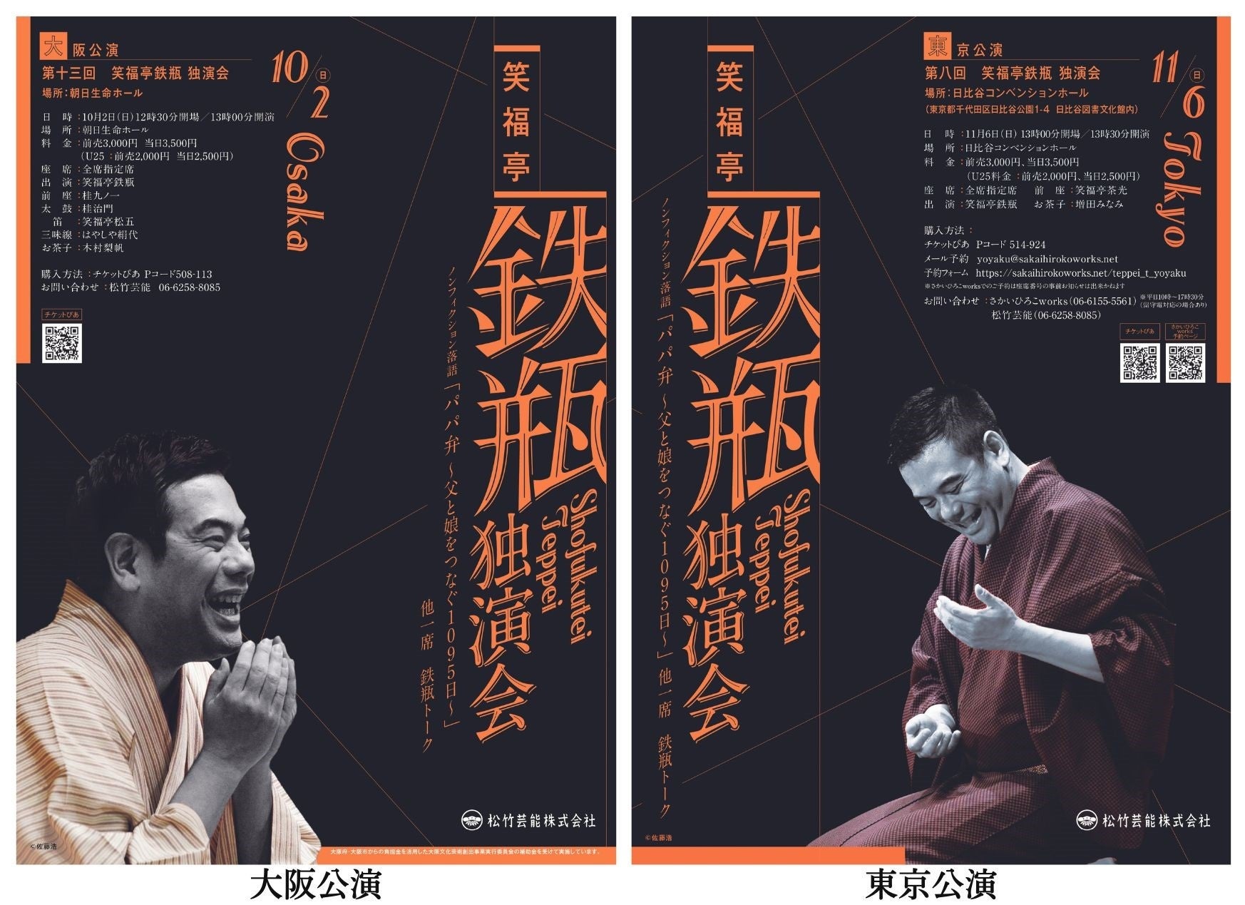 昨年11月の大阪での独演会にて笑福亭鉄瓶が自ら題材を見つけ、当事者に直接取材を行い、創作する新ジャンルのノンフィクション落語・「生きた先に」を披露いたしました。多くの反響を受け、追加公演や全国の夜間学校の講演にて上演しております。今年は大阪・東京の独演会にて第二作目「パパ弁〜父と娘をつなぐ1095日」をお送りいたします。料理未経験の父が高校生の娘に対して、仕事と家事に奮闘しながら3年間毎日お弁当を作りつづけた父と子の心温まる感動ノンフィクション物語を披露いたします。