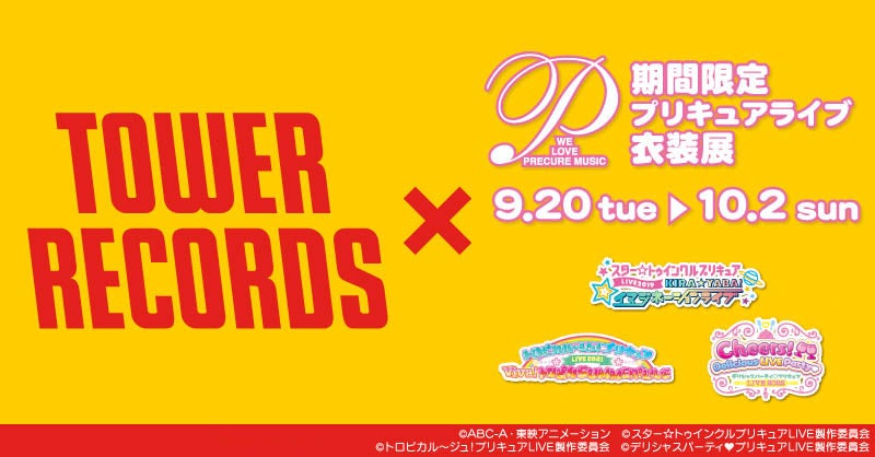 プリキュアライブ 衣装展がタワーレコードにて初開催決定!ライブに使用した実際の衣装を展示!9月20日(火)~10月2日(日)@タワーレコード渋谷