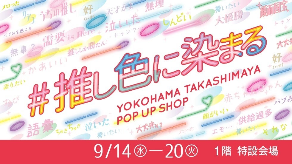 そこで横浜高島屋1階 特設会場では、9月14日(水)~20日(火)の期間、“推し色”にフォーカスしたPOP UP「♯推し色に染まる」を開催します。「推しのいる生活」がより豊かに、そしてさらに楽しくなるような推し事グッズや推しカラーアイテムをご提案します。