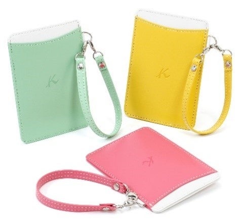 ホワイトカラーの革とコンビネーションのパスケース。取り外し可能なストラップ付きです。