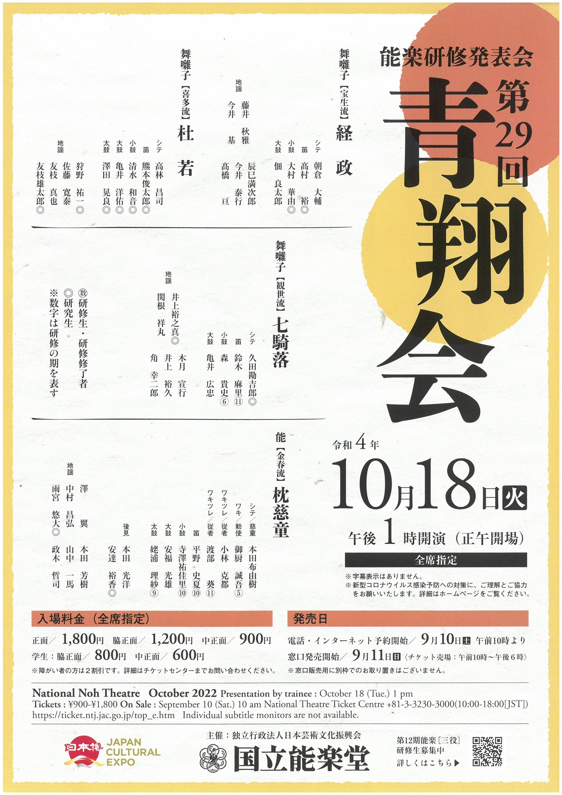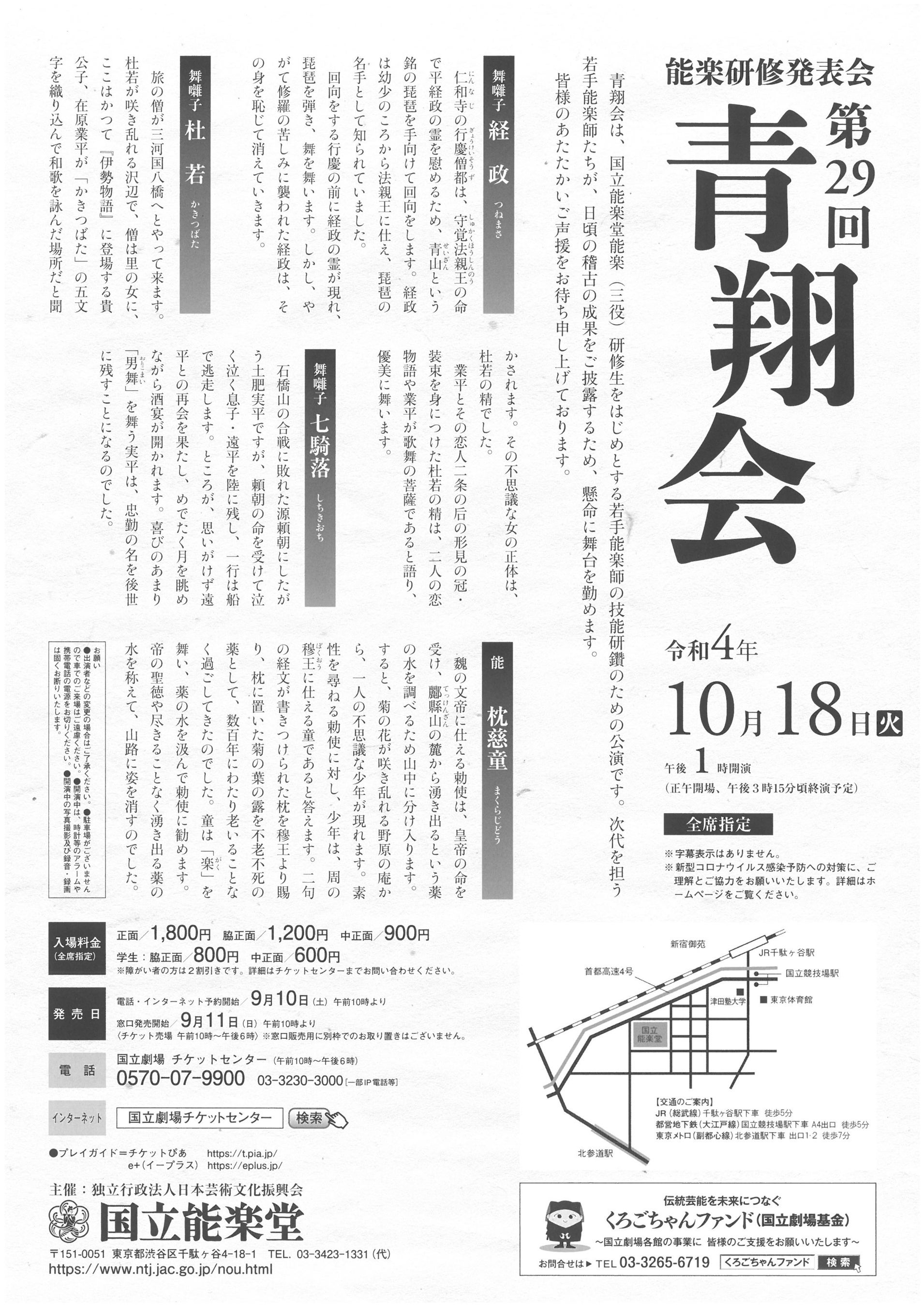 第29回青翔会(能楽研修発表会) / 2022年10月18日(火)午後1時開演