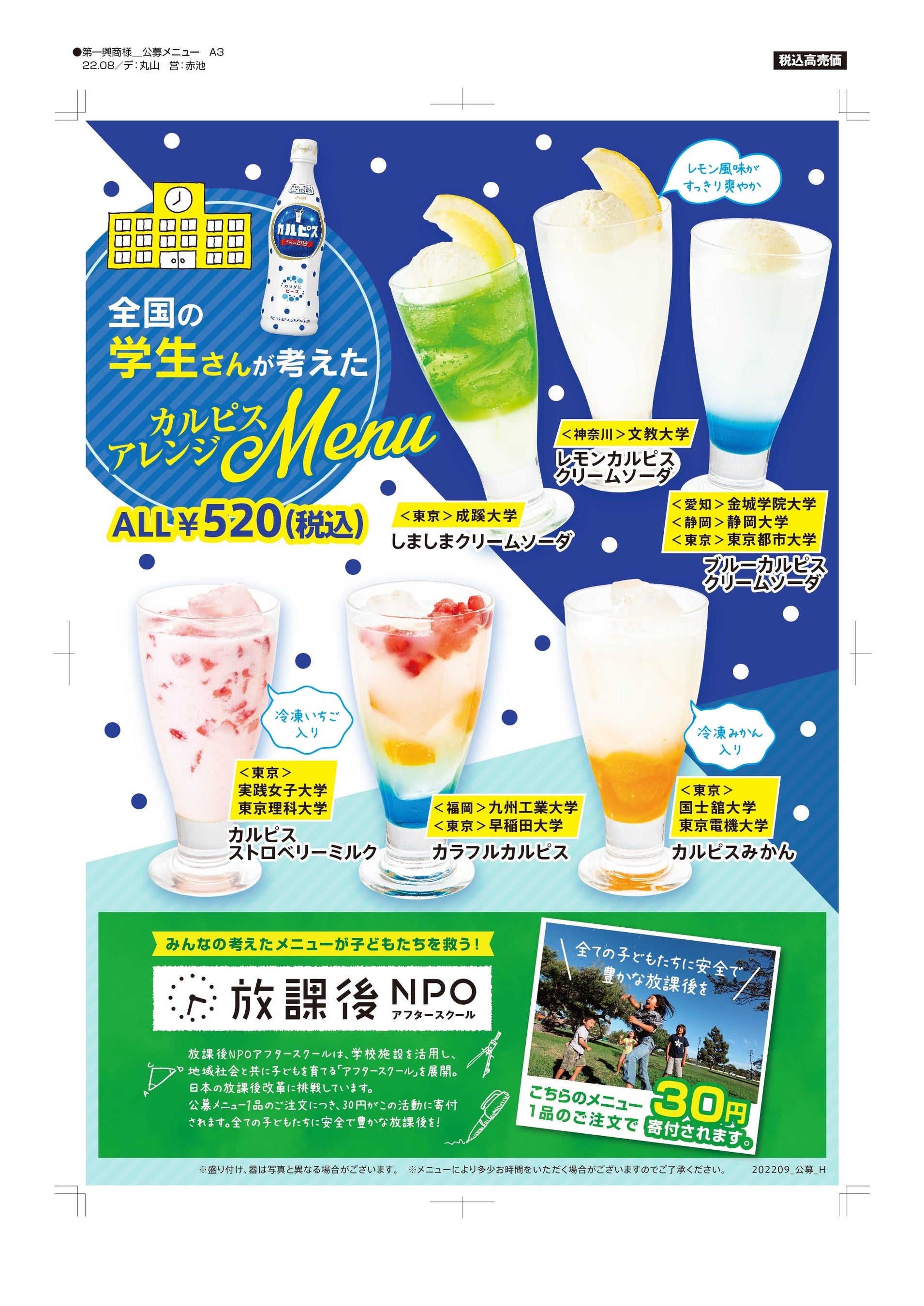 ブルーカルピスクリームソーダ <東京/東京都市大学、静岡/静岡大学、愛知/金城学院大学>