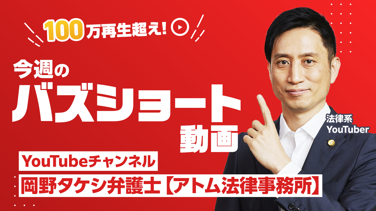 法曹系として日本一の登録者数を持つ『岡野タケシ弁護士【アトム法律事務所】』。8月29日から9月4日までに投稿されたショート動画のうち早くも再生数100万回を突破した動画をご紹介します。