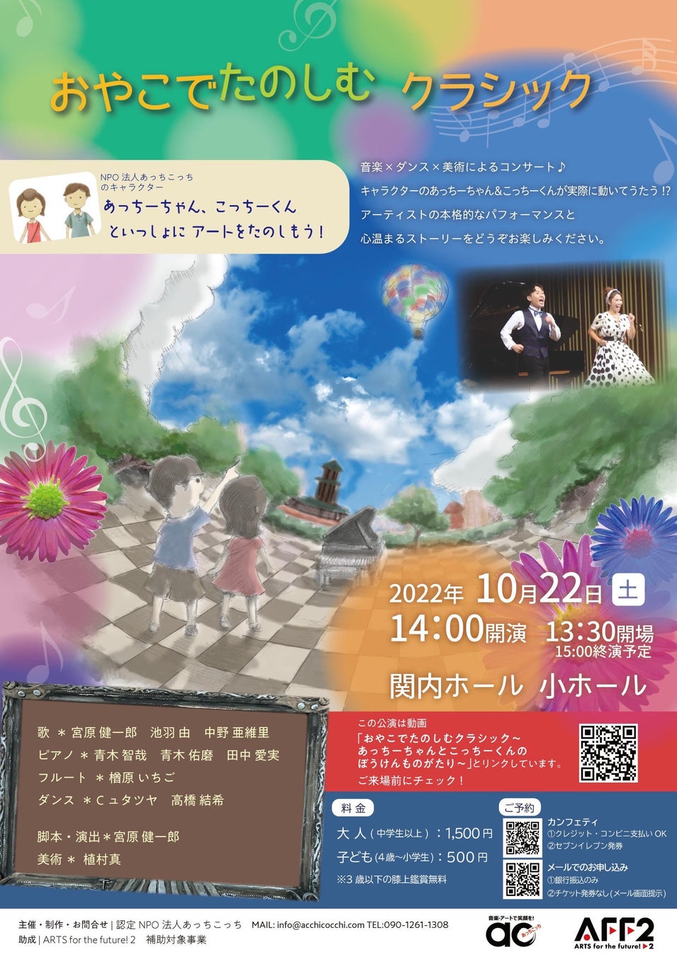 認定NPO法人 あっちこっち(理事長:厚地美香子)主催、『おやこでたのしむクラシック』が2022年10月22日(土)に関内ホール 小ホール(神奈川県横浜市中区住吉町4丁目42-1)にて開催されます。