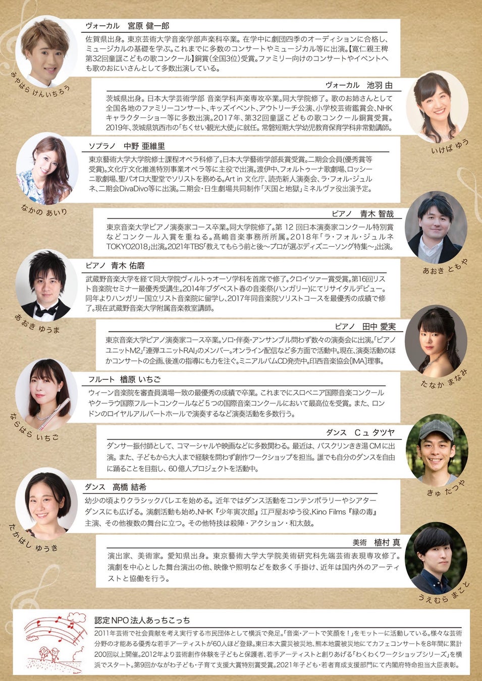 ※この公演はYouTube動画「おやこでたのしむクラシック あっちーちゃんとこっちーくんのぼうけんものがたり」とリンクしています。
