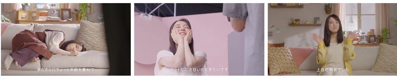 「ミノン アミノモイスト」の乳液を使うことで、落ち込んでいる表情が、自信に溢れていく表情に変わるシーンに注目です。そして、今回はテーマ曲の歌唱だけではなく、TV-CMのナレーションも上白石さんが務めました。上白石さんのやさしく、包み込むような声と合わせて新TV-CMをぜひお楽しみください。