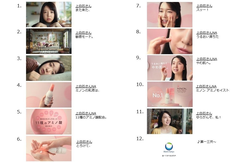 第一三共ヘルスケア株式会社(本社:東京都中央区)は、2020年放映の第1弾、2021年放映の第2弾に引き続き、俳優・上白石萌音さんを起用した敏感肌向けフェイスケアシリーズ「ミノン アミノモイスト」のTV-CM「また来た、敏感モード」篇を、2022年9月17日(土)から全国で放映します。