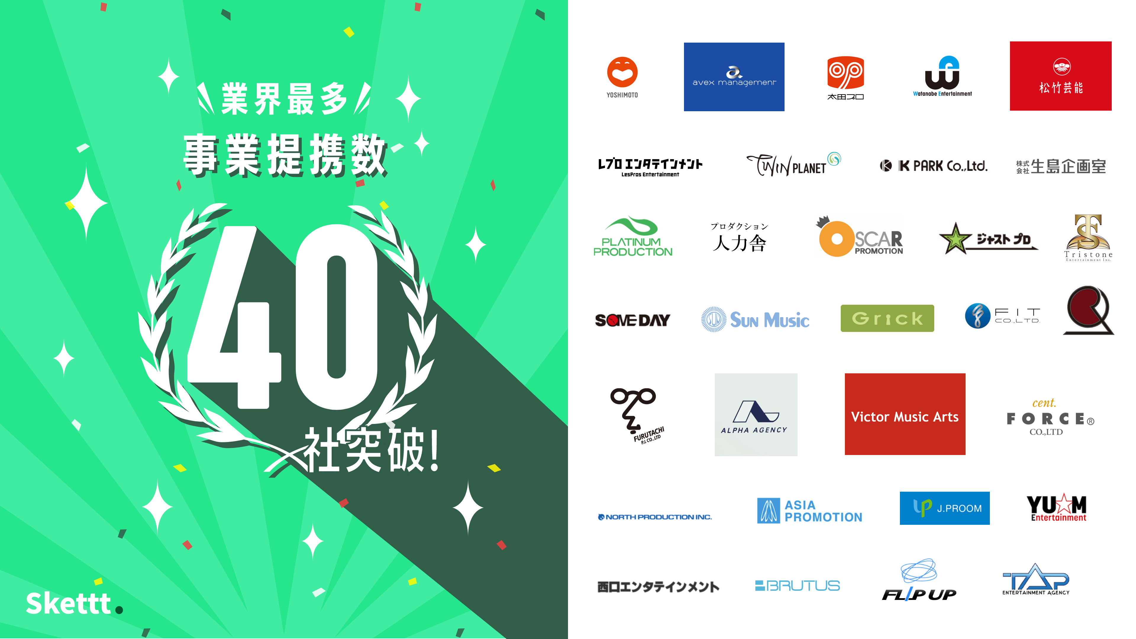 今回タレント事務所との提携数が業界最多の40社を突破したことを発表いたします。