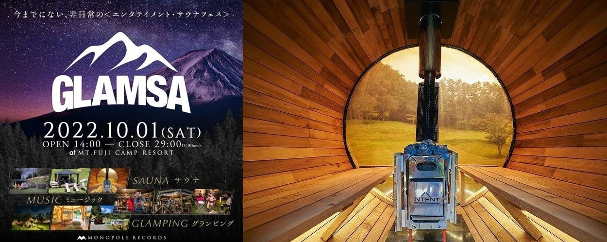 極上のグランピング×サウナ×音楽を体験できる史上初のエンターテイメント・サウナフェス「GLAMSA(グランサ)」を10月1日(土)に富士山の麓で開催