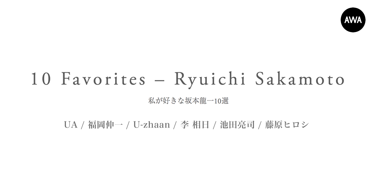 本プレイリストは、坂本龍一の古希を記念して立ち上げられた、坂本龍一の全年代に渡る音楽に焦点をあてたアニバーサリー企画『10 Favorites – Ryuichi Sakamoto 私が好きな坂本龍一10選』と連動し、1年間にわたり定期的に公開していきます。第三弾となる今回は、UA、福岡伸一、U-zhaan、李 相日、池田亮司、藤原ヒロシが選んだ計59作品を収録。UAが選んだ、2017年に発表されたアルバム『async』の収録曲「solari」をはじめ、映画監督の李 相日が選曲した1987年に公開されたベルナルド・ベルトルッチ監督の映画『ラストエンペラー』のテーマ曲「The Last Emperor (Theme)」や、タブラ奏者のU-zhaanが選んだ韓国のラッパー、MCスナイパーがラップを担当している「undercooled」など、6人の想い出深い作品の数々がちりばめられています。『教授』の音楽を愛する人々がセレクトした坂本龍一の珠玉の作品群を、ぜひAWAでお楽しみください。