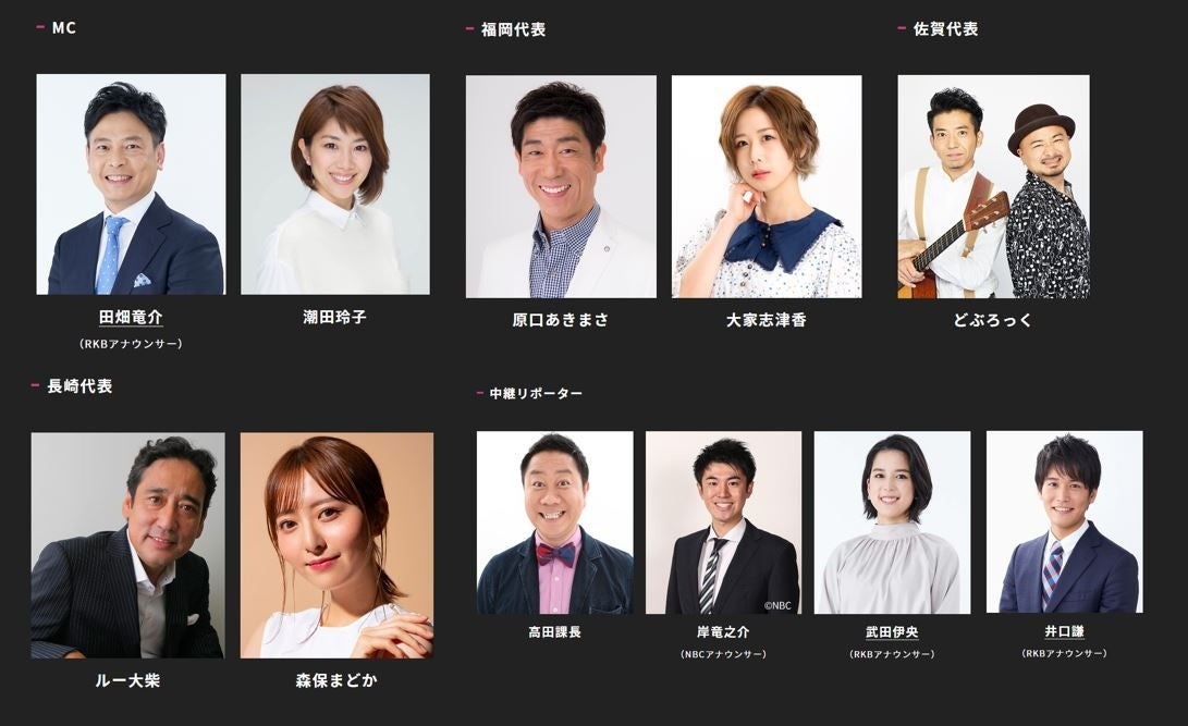 中継リポーター:高田課長・岸竜之介(NBCアナウンサー)・武田伊央(RKBアナウンサー)・井口謙(RKBアナウンサー)