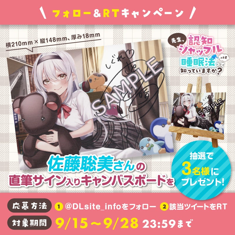 作品の配信を記念して、佐藤聡美さんの直筆サイン入りキャンバスボードが3名に当たるTwitterキャンペーンを開催いたします。