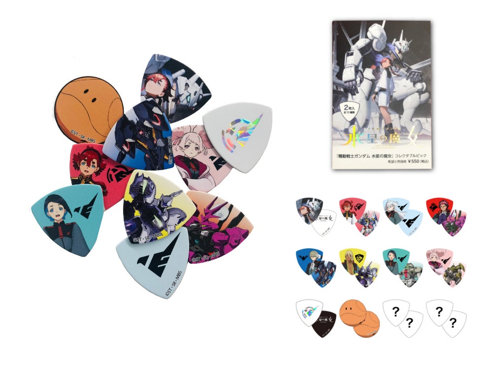 ピックは『機動戦士ガンダム 水星の魔女』に登場するキャラクターやマークが施されており、ランダムで2枚入り。お気に入りのピックを使えば、普段のギター練習もさらに楽しくなるでしょう。