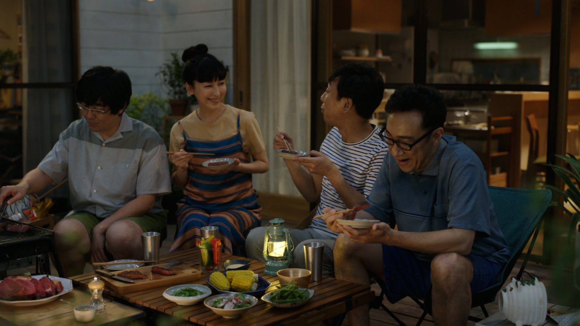 豊本さん宅の庭で過ごす4人。「ほんと美味しい、このお肉」と飯塚さん。「さとふるで定期便で届くんです」「楽しいよ、毎回いろんなお肉が届いて」と麻生さんと豊本さんがふるさと納税の定期便のお礼品を楽しんでいることを話します。そこに「会うたびに新しい一面を知れるってドキドキするよね」と言う角田さんに「なんかあったな?」と飯塚さんが何かを察してツッコみを入れる、続編の橋渡しとなるストーリーです。
