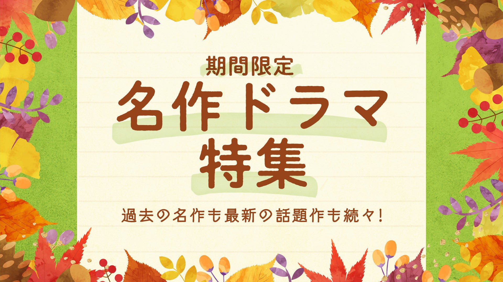 また、秋の夜長にドラマを存分に楽しんでいただけるよう、過去の名作テレビドラマ計100タイトル超を集めた『名作ドラマ特集』も同時開催。こちらもすべて無料です。