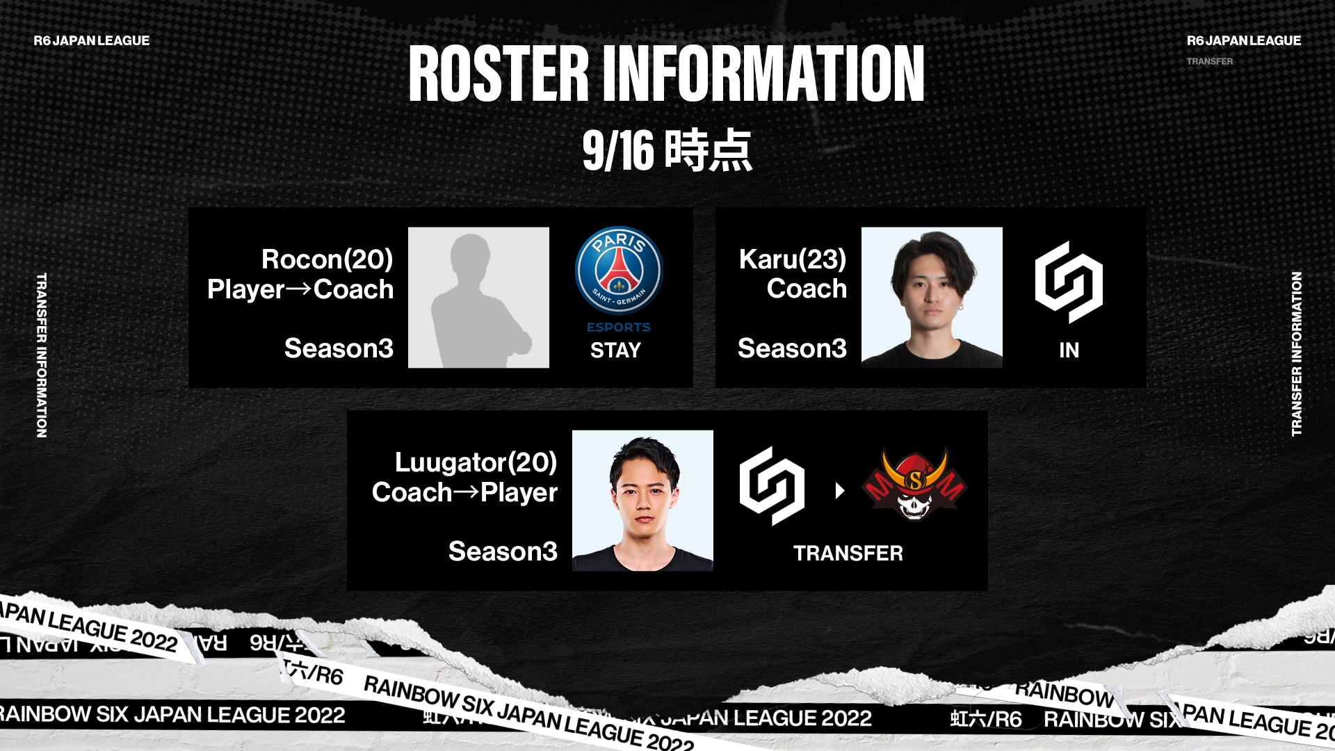 ■最終Seasonがいよいよ明日開幕!各チームが選手移籍で逆転優勝を狙う「X-MOMENT Rainbow Six Japan League 2022 Season3(RJL 2022 Season3)」