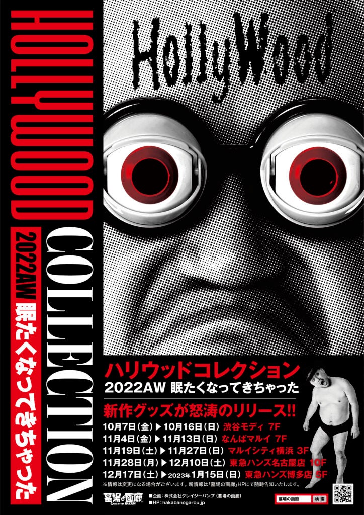 マンガ、アニメ、特撮などの人気コンテンツをテーマにした企画展を開催、運営している株式会社クレイジーバンプは、10月7日(金)より渋谷、11月4日(金)より大阪、11月19日(土)より横浜、11月28日(月)より名古屋、12月17日(土)より福岡にて開催する【ハリウッドコレクション2022AW 眠たくなってきちゃった】のグッズ情報第一弾を発表いたします。