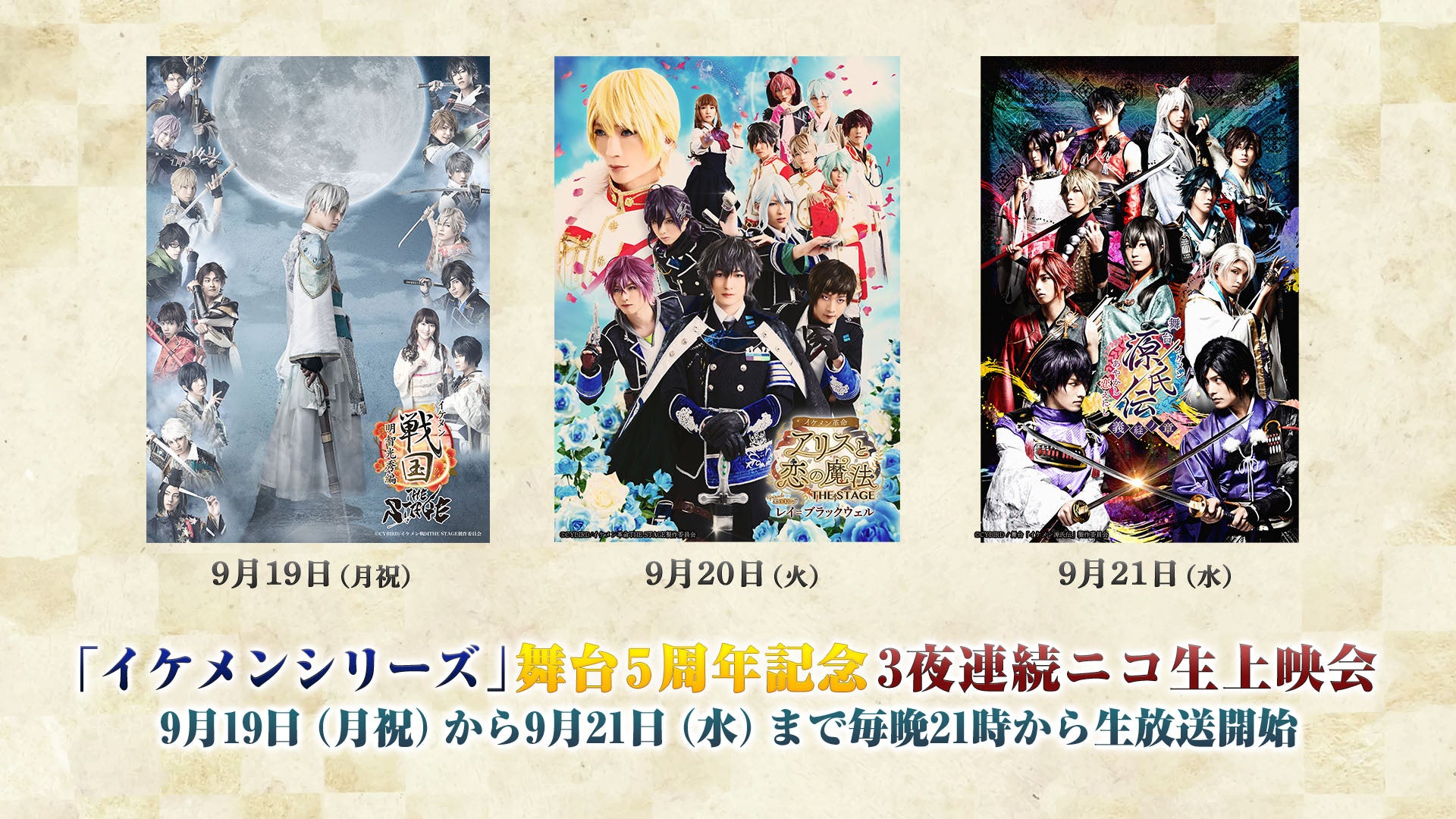 「イケメンシリーズ」舞台5周年を記念して、9月19日(月祝)、9月20日(火)、9月21日(水)と